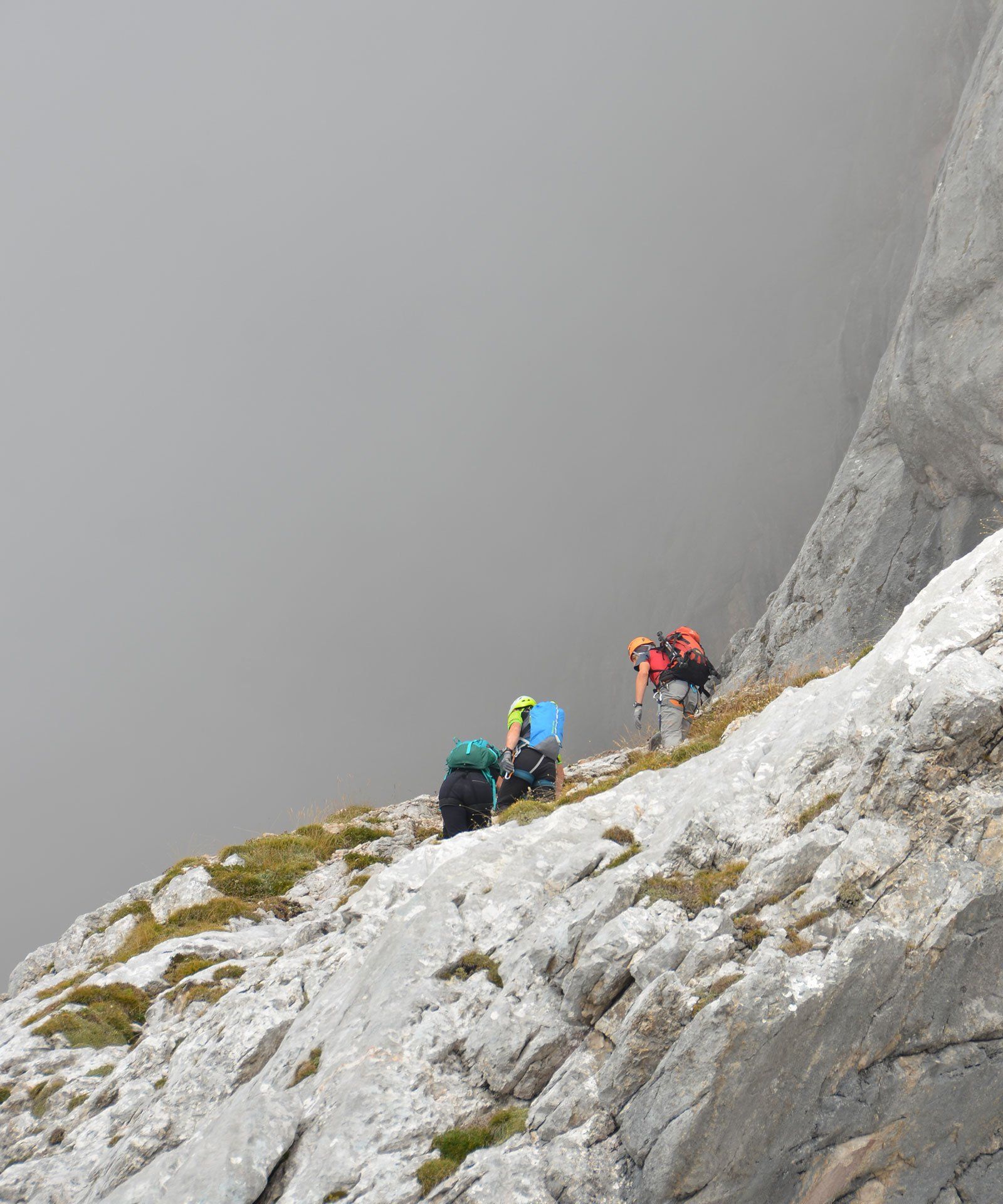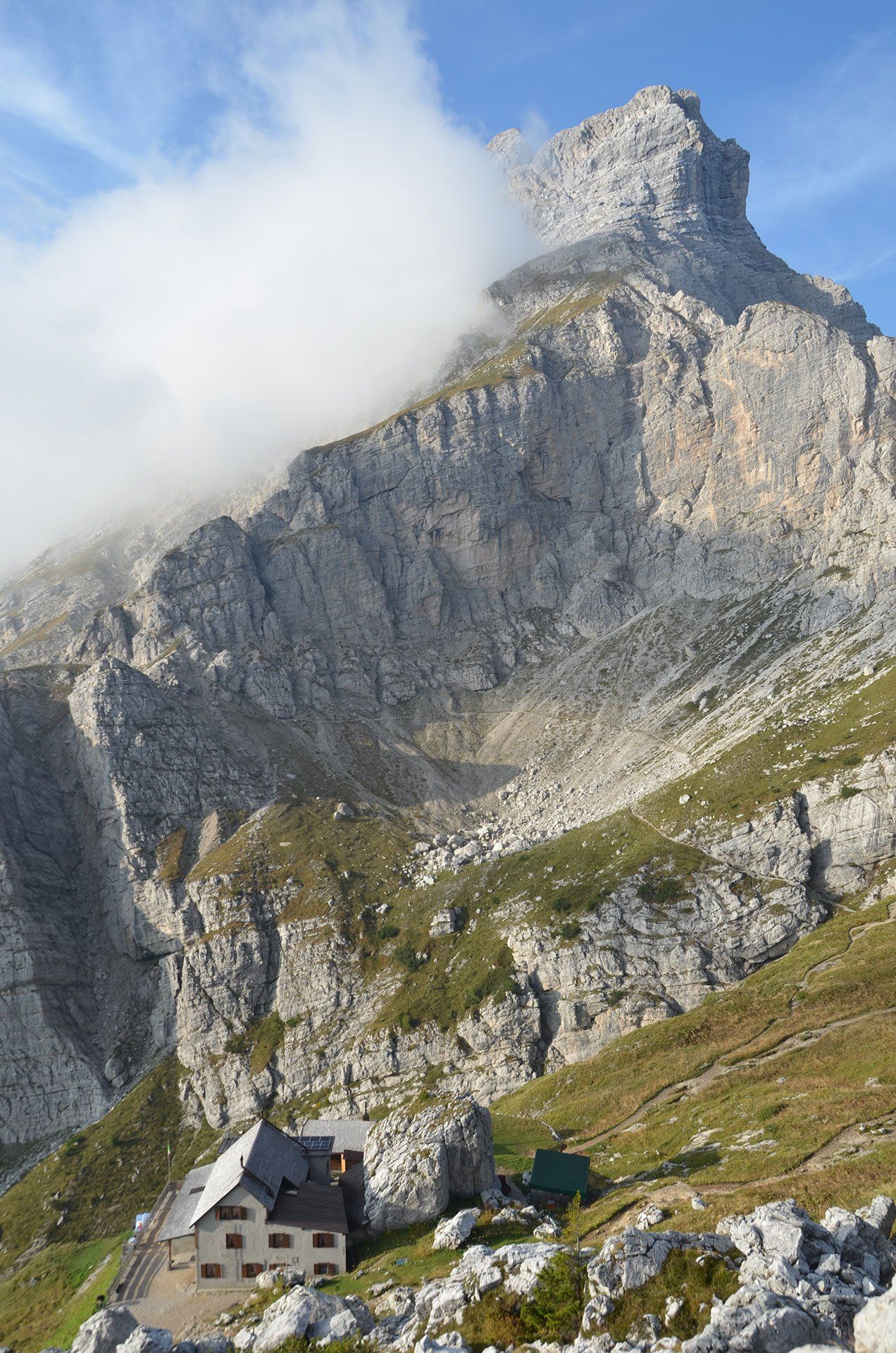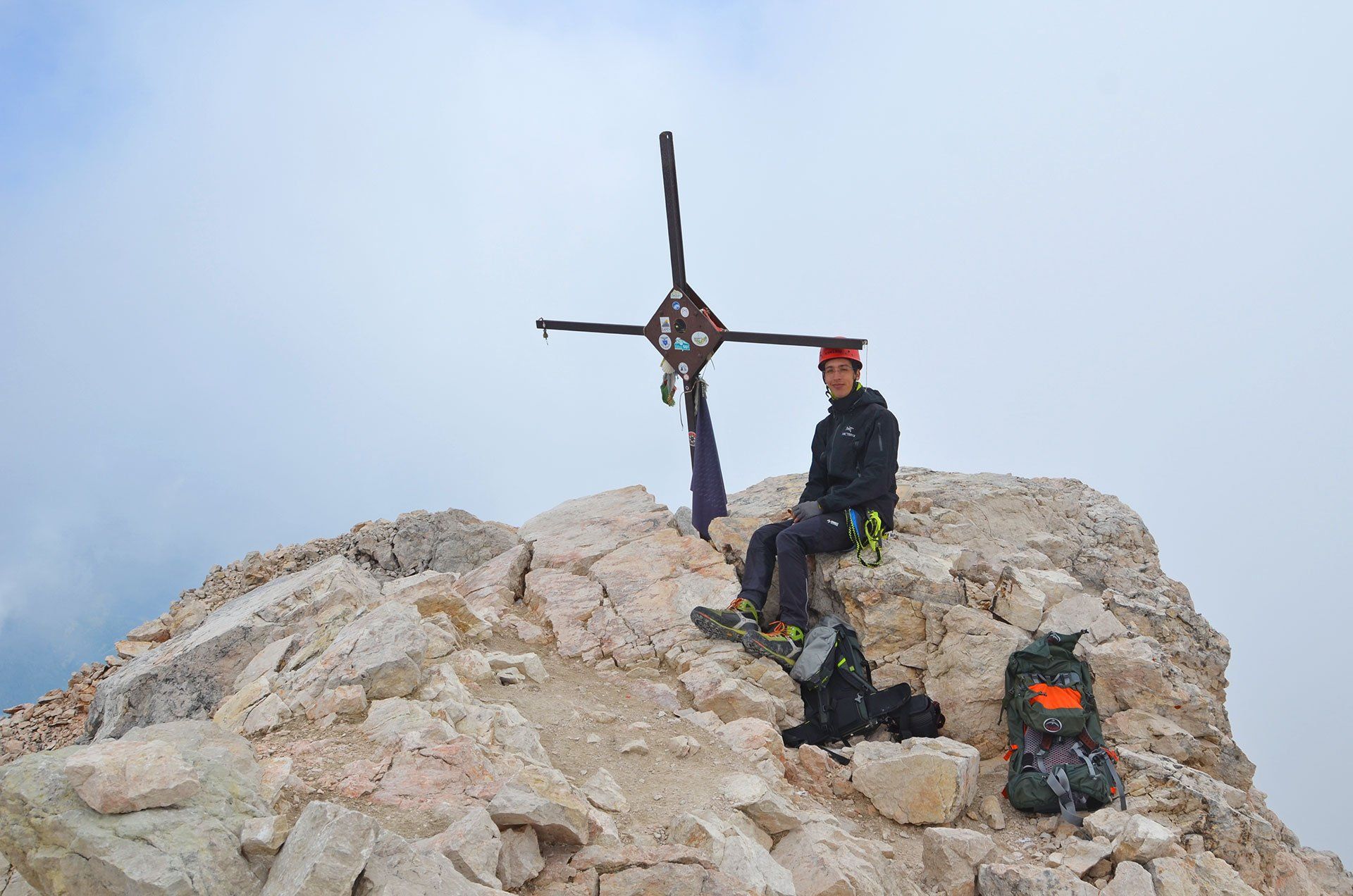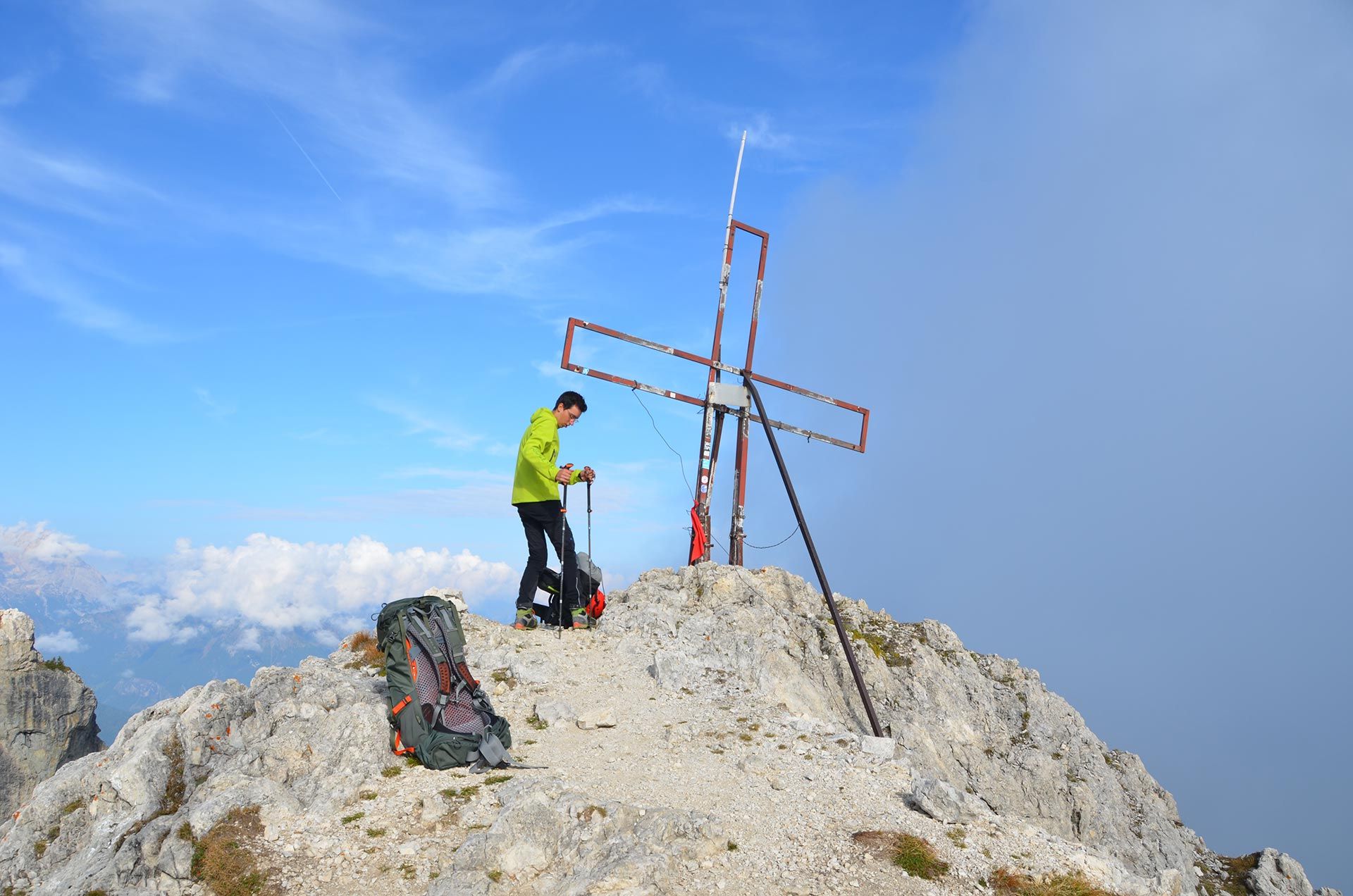 „Ich war noch nie auf dem Monte Civetta“ – mit dieser Aussage fährt man gern in die Dolomiten. In jungen Jahren in der „Civetta“, das schon: Die berühmten Tissi-Routen Torre Venezia Südwand und Torre Trieste Westkante. Die 283. Begehung der Campanile di Brabante, ein unbedeutender Turm mit legendärem Anstieg (ob das Gipfelbuch mit unserem Eintrag noch existiert?). Es gibt immer Gipfel, die noch auf meiner Wunschliste stehen: Monte Pelmo und Monte Agner in den Dolomiten, Mont Dolent und Grand Combin in den Westalpen. Der Monte Civetta kann von der Liste gestrichen werden. Die Überschreitung ist sehr abwechslungsreich: Über die Ferrata Alleghesi zum Gipfel und aus Wettergründen nicht die Ferrata Tissi abwärts, sondern direkt auf dem Normalweg zurück zur Rifugio Coldài. Na ja, die anderen Gipfel kommen auch noch dran ...