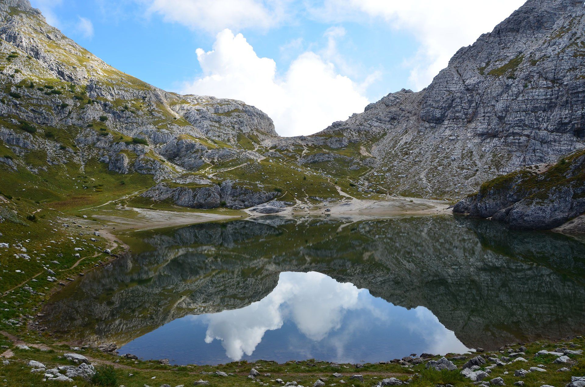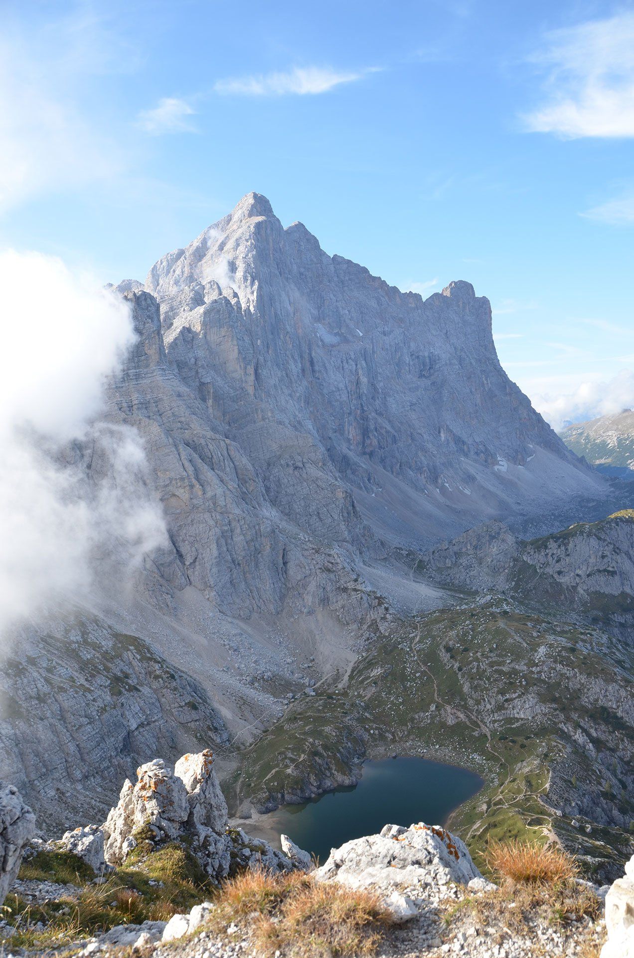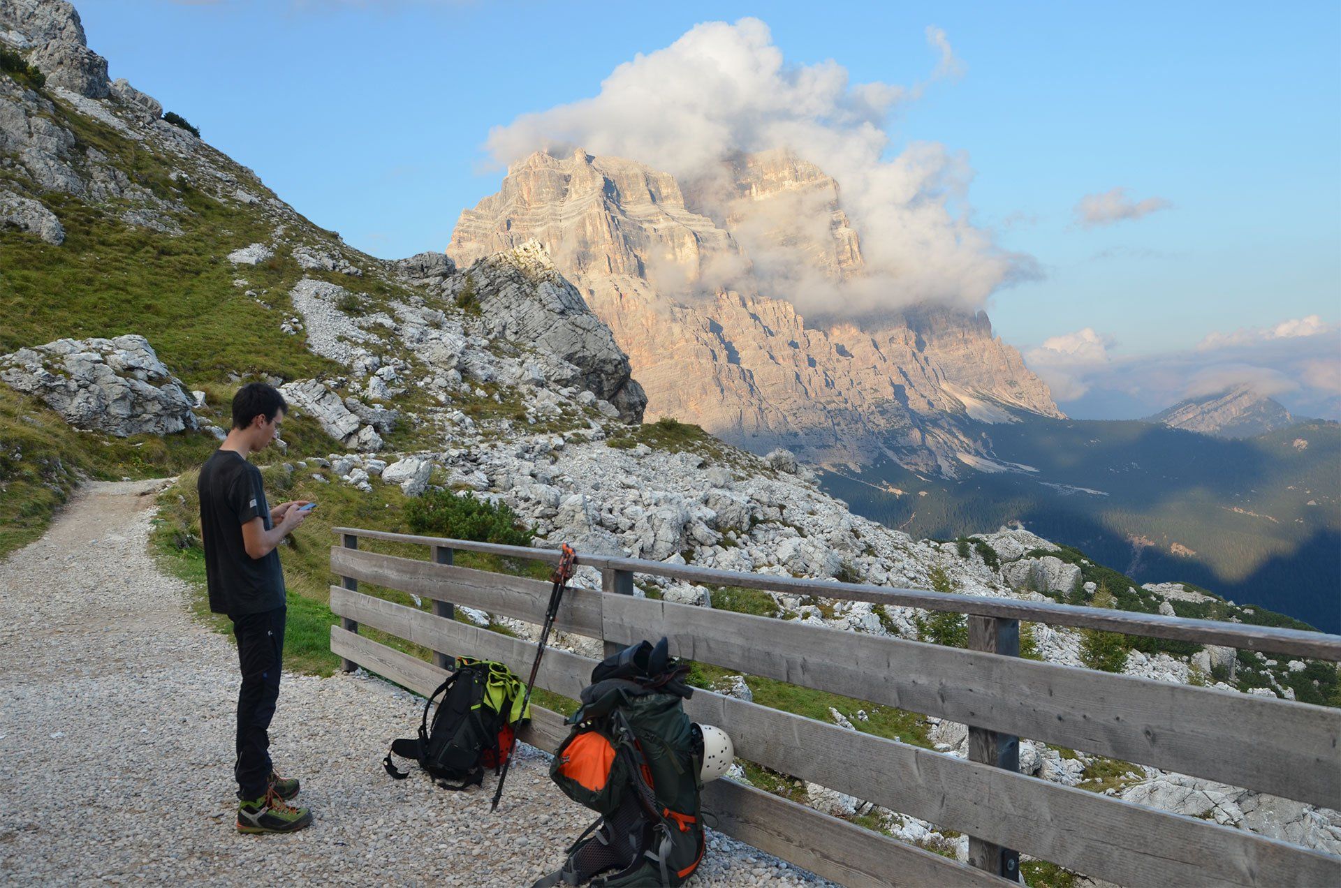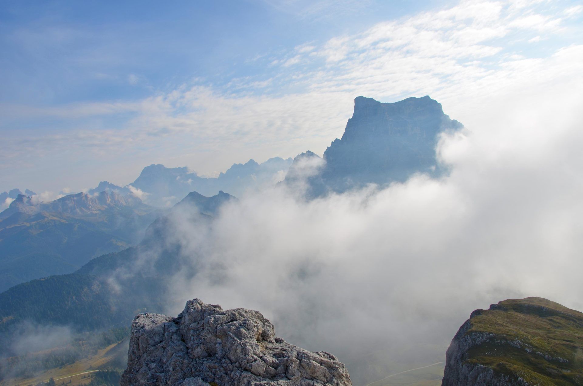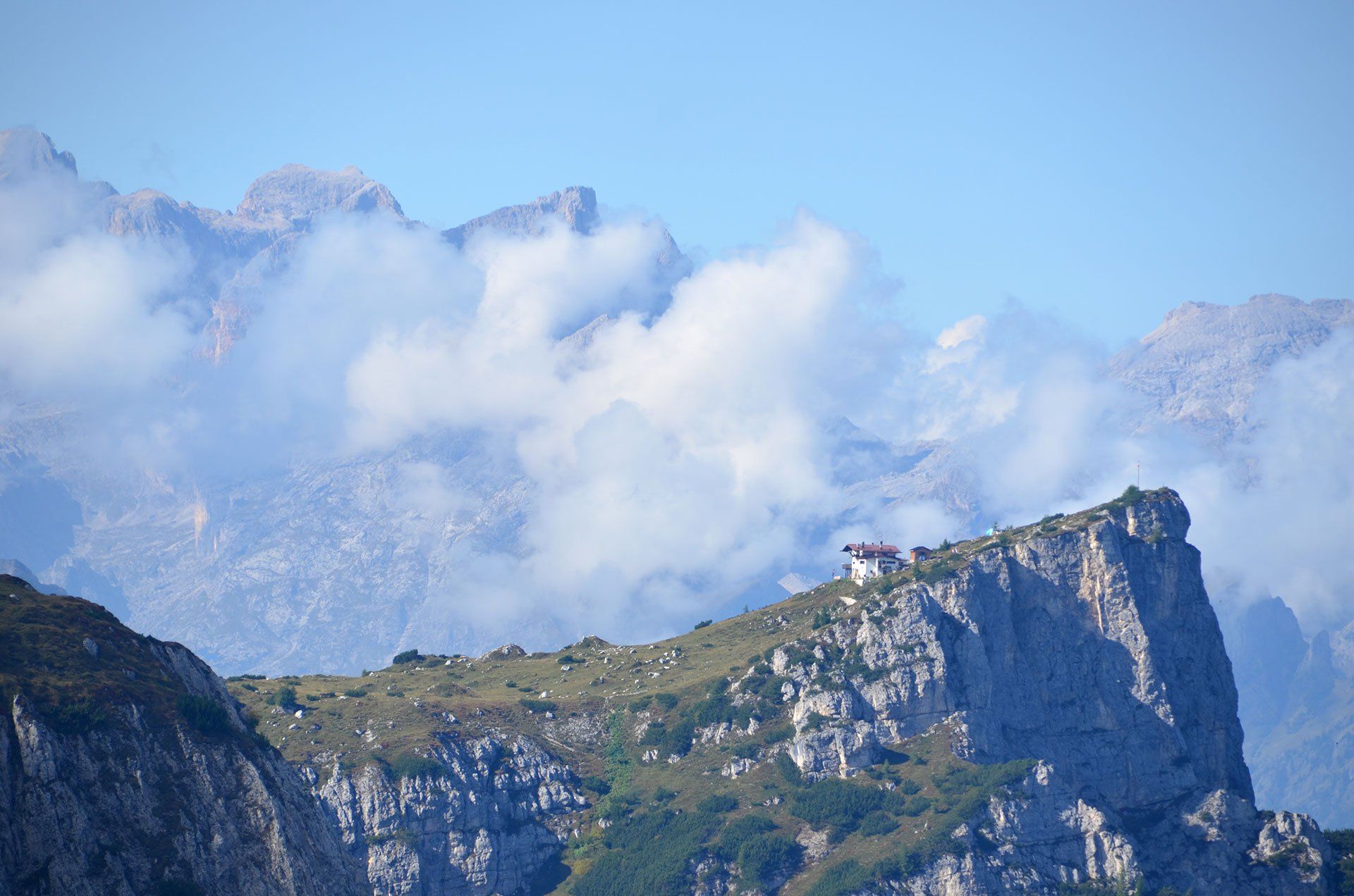 „Ich war noch nie auf dem Monte Civetta“ – mit dieser Aussage fährt man gern in die Dolomiten. In jungen Jahren in der „Civetta“, das schon: Die berühmten Tissi-Routen Torre Venezia Südwand und Torre Trieste Westkante. Die 283. Begehung der Campanile di Brabante, ein unbedeutender Turm mit legendärem Anstieg (ob das Gipfelbuch mit unserem Eintrag noch existiert?). Es gibt immer Gipfel, die noch auf meiner Wunschliste stehen: Monte Pelmo und Monte Agner in den Dolomiten, Mont Dolent und Grand Combin in den Westalpen. Der Monte Civetta kann von der Liste gestrichen werden. Die Überschreitung ist sehr abwechslungsreich: Über die Ferrata Alleghesi zum Gipfel und aus Wettergründen nicht die Ferrata Tissi abwärts, sondern direkt auf dem Normalweg zurück zur Rifugio Coldài. Na ja, die anderen Gipfel kommen auch noch dran ...