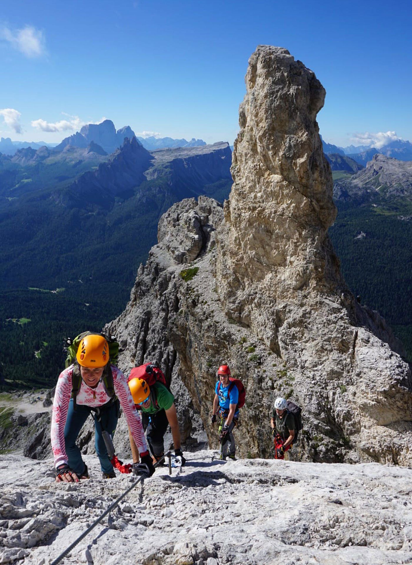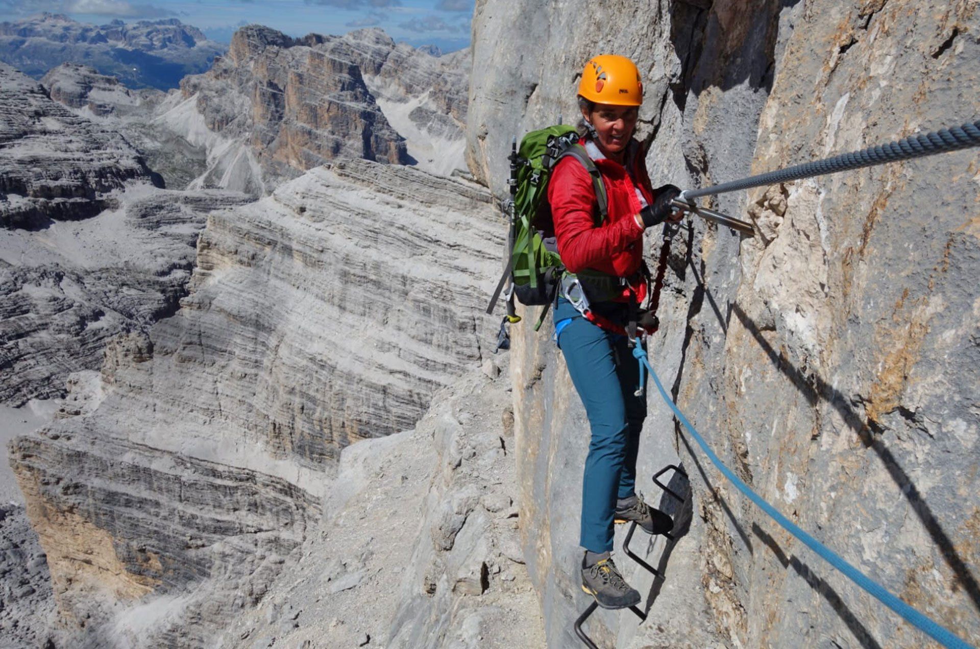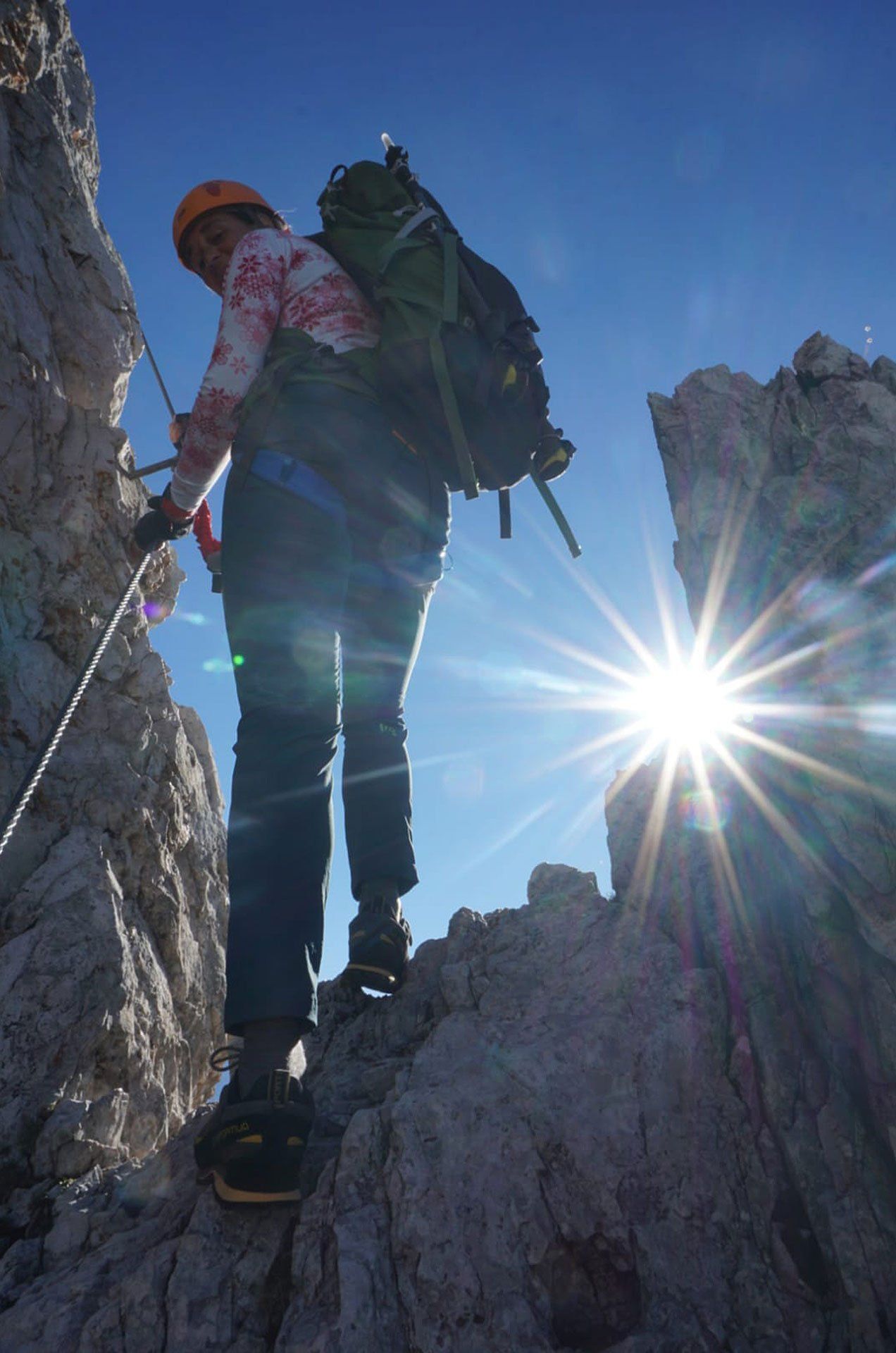 Via Ferrata – Eisenweg – was für ein sprechender Name für versicherte Steige in den Alpen. Besonders berühmt und spektakulär in den Dolomiten. Sie machen Gipfel, Grate und Überschreitungen auch für „normale“ Bergsteiger zugänglich. Für passionierte Kletterer zwar meist unschwierig zu begehen, sind die Klettersteige in der Pala, Civetta, Sella, Brenta, Ampezzaner Dolomiten – um nur einige Gebiete zu nennen – doch immer ein grandioses Erlebnis. Und man muss ja die Stahlseile und Trittstufen nicht verwenden … ich erinnere mich noch an eine „fast berührungsfreie“ Begehung des Bolver-Lugli in der Pala in meinen besten Kletterjahren.