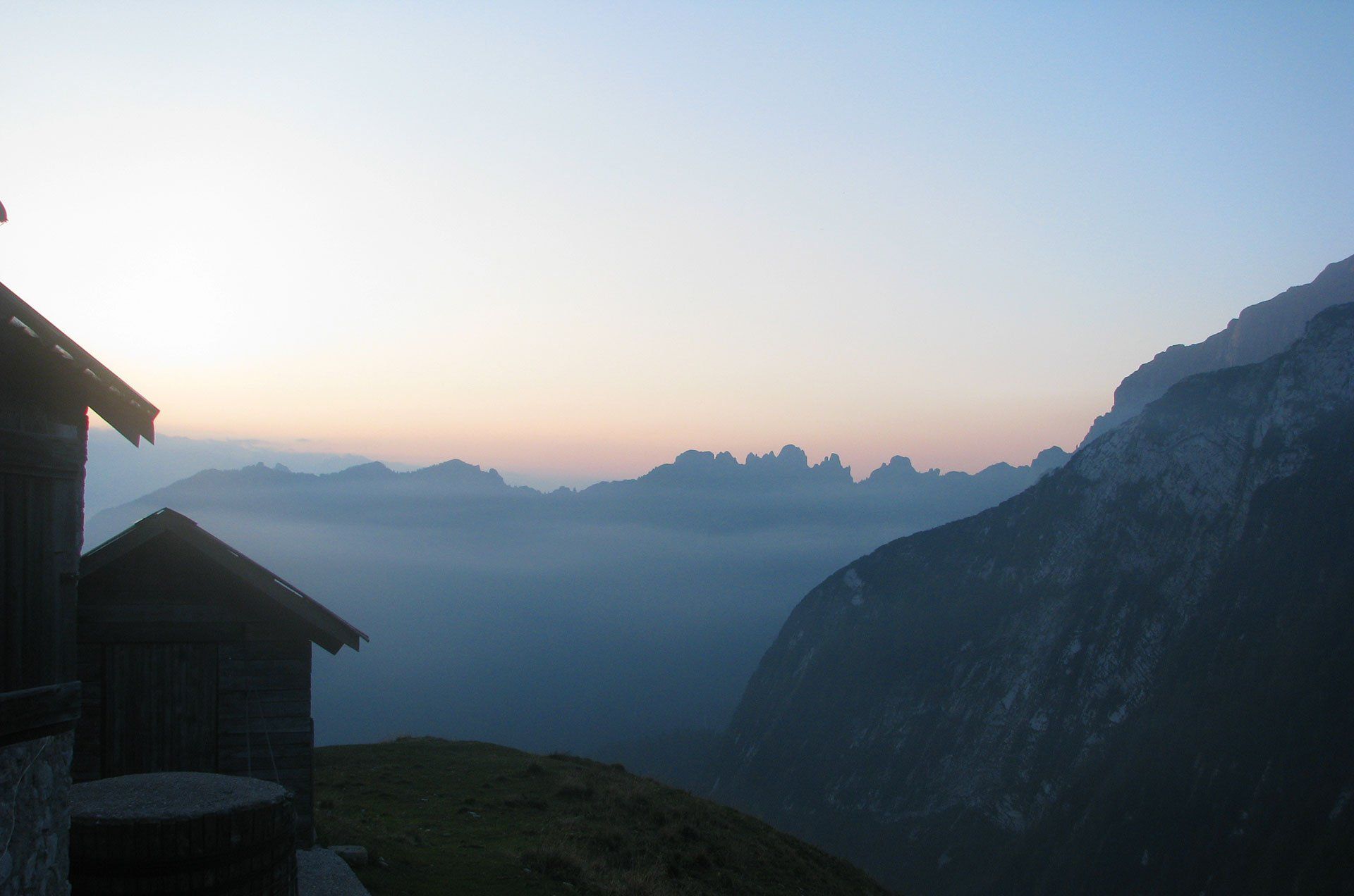 Von Obervintl nach Belluno – einmal über die gesamte Gruppe der Dolomiten – diesmal zu Fuß; die ursprünglichste Form sich auf eine Tour zu begeben: gänzlich untechnisch, kaum Ausrüstung, langsames bewusstes Erleben und gerade deshalb so ursprünglich, menschlich. Der sich auf eine solche Art Tour einlässt, kann die täglichen Distanzen verstehen, sich mit dem Vorankommen arrangieren. Auch auf dieser Tour durchschreiten wir unterschiedliche alpine Kulturräume – um letztendlich bei Karins Eltern in Venedig unsere müden Füße unter dem elterlichen Esstisch auszuruhen.
