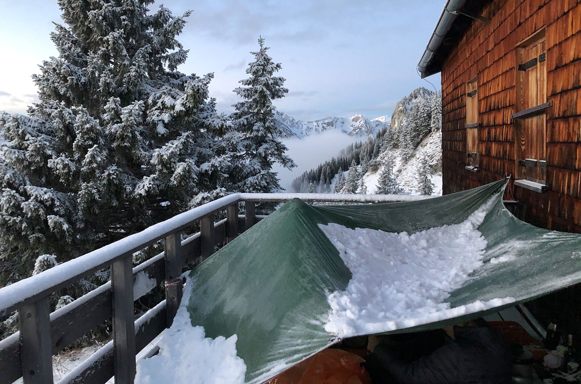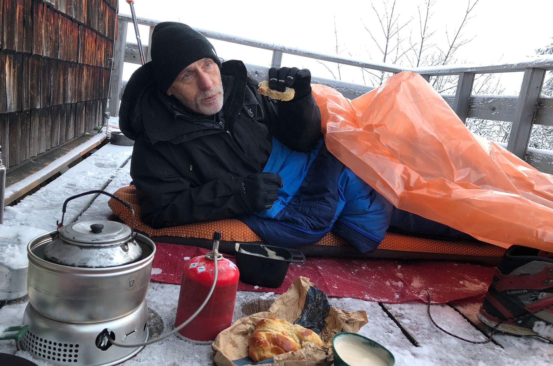 Was soll man schon machen im Dezember? Für eine zünftige Skitour fehlt der erste Schnee und das Wetter ist wie meistens am Jahresende trüb und unfreundlich. Also trotzdem raus! Die Ammergauer sind von Höhenrain ja nicht weit. Rucksack gepackt mit Schlafsack, Isomatte, Kocher und Glühwein und auf geht’s zu einem lauschigen Biwak. Und am frühen Morgen nach einem „Frühstück im Bett“ gleich noch einen Gipfel gemacht. Die Aussicht vom Brunnenkopf war recht bescheiden, wir waren jedoch die einzigen Gäste. Was bei diesem Berg eher die Ausnahme ist: Das Gipfelbuch war übervoll beschrieben – und das erst seit Frühjahr.