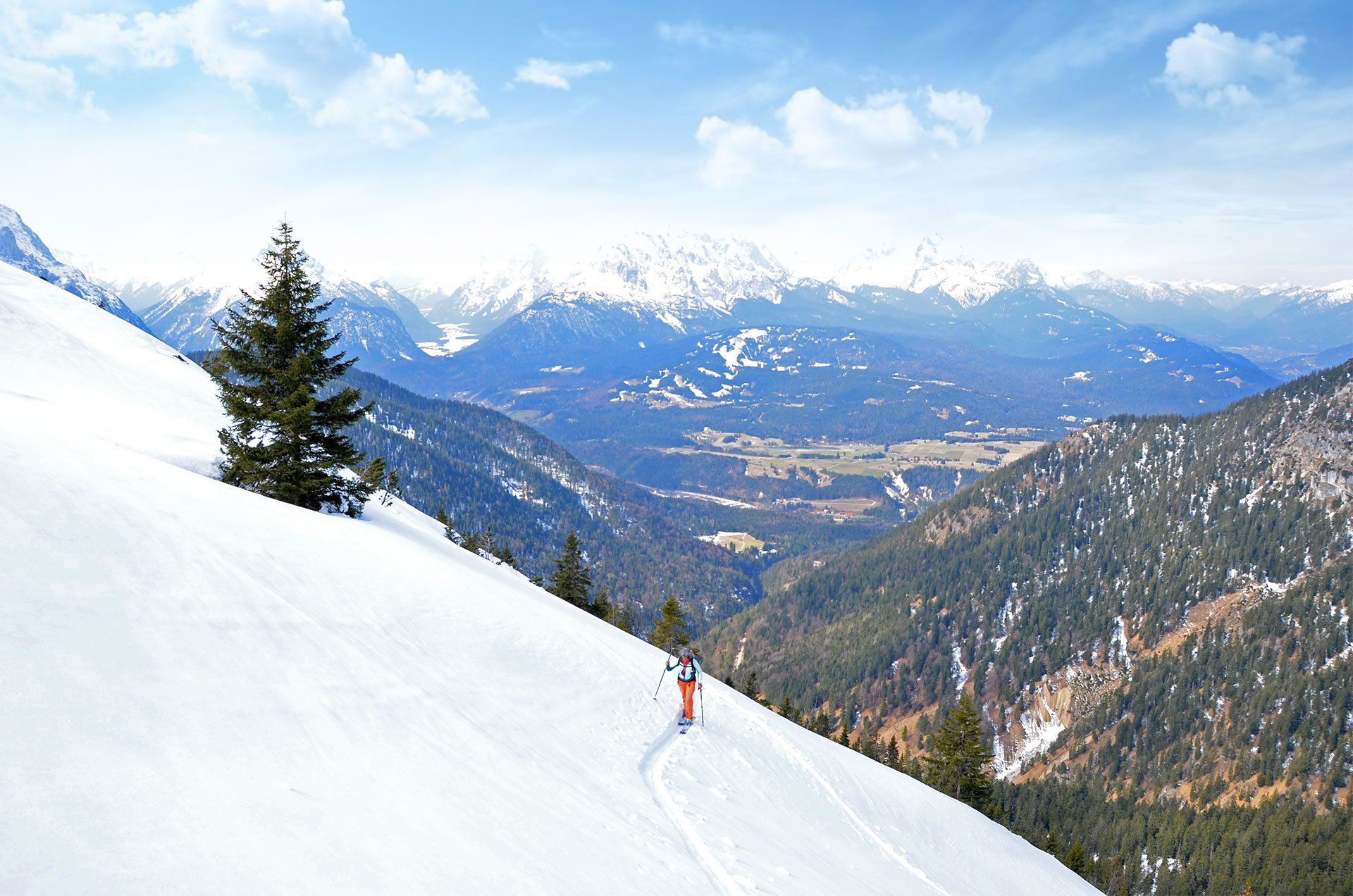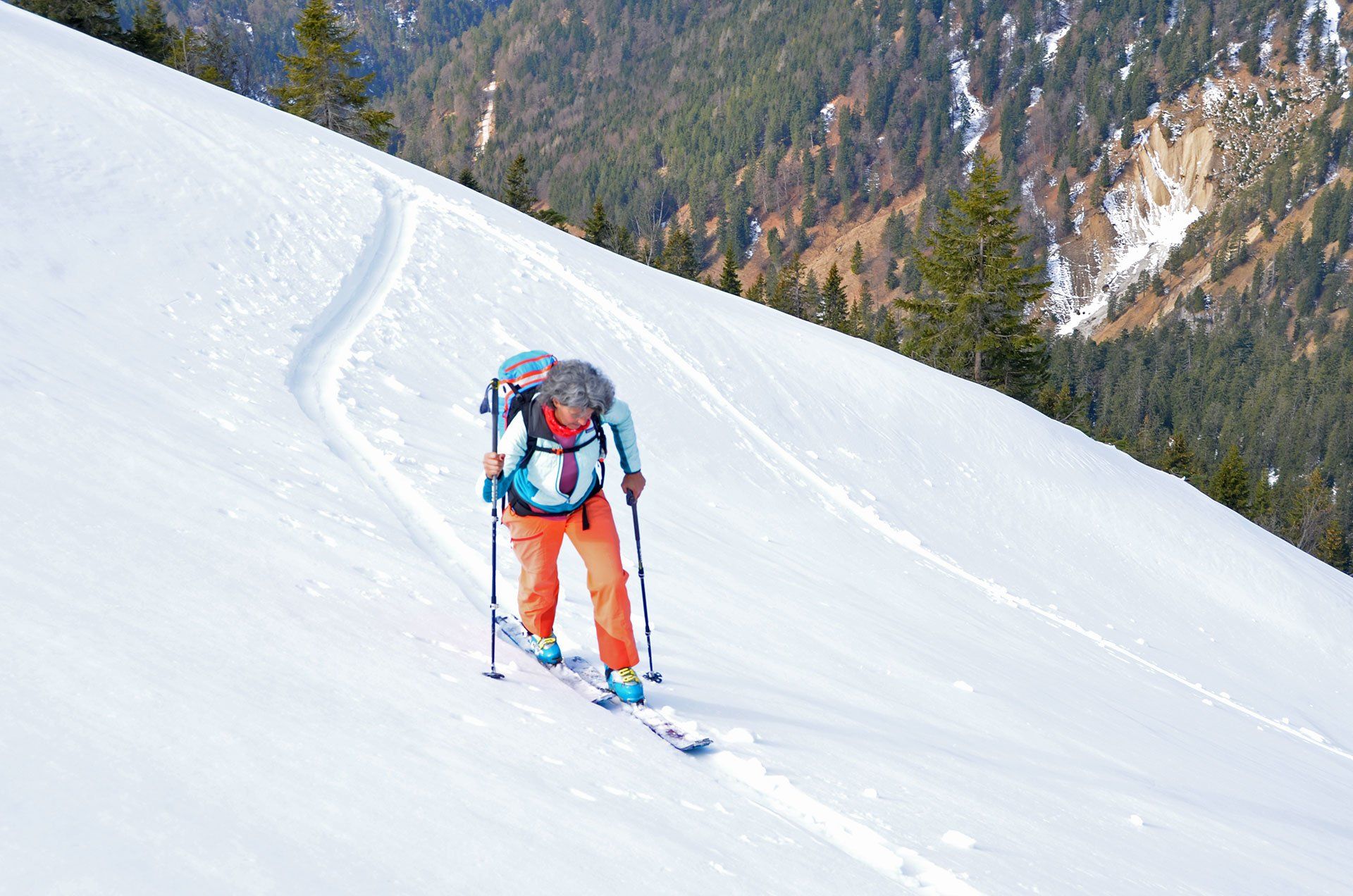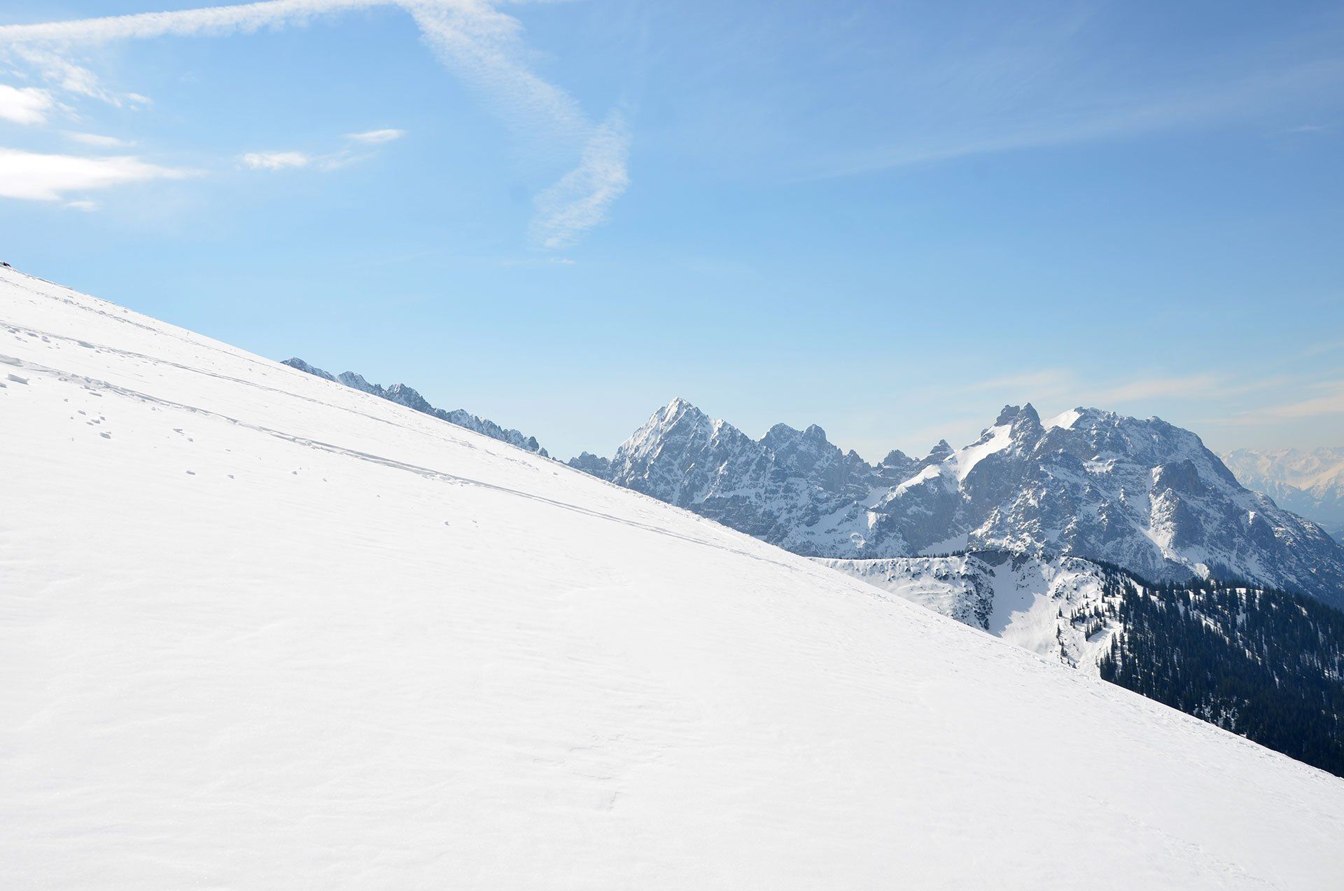 Feldernkopf im April? Was soll man schon Großes unternehmen, wenn die hohen Berge im benachbarten Ausland coronabedingt unerreichbar sind. Eine schöne Skitour ist der Feldernkopf in der Soierngruppe oberhalb von Mittenwald allemal. Im Frühling allerdings sind mit 600 hm zu Fuß und 600 hm auf Skiern dampfende Socken garantiert. Ideal, um neue Tourenstiefel einzulaufen – oder die Forststraße ab der Ochsenalm „strümpferd“ abzusteigen. Ach ja, ein paar schöne Schwünge in den freien Hängen unterhalb des Gipfels waren natürlich auch noch geboten. Und wer liebt nicht das „Frühlingsgefühl“ bei so einer Aktion: In der Goretex-Jacke auf dem windigen Gipfel rasten und kurzärmelig, die Skier am Rucksack, zurück ins Tal wandern. Einfach „a pfundige“ Tour.