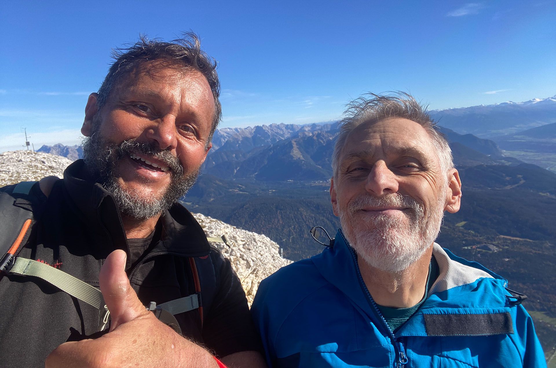 Unserer Vereinbarung folgend, die Berge nicht nur im Schnee vermehrt zu erkunden, hatten wir uns die auch als Skitour bekannte Hohe Munde hoch über dem Inntal vorgenommen. Ein schöner Berg der seine Höhenmeter nicht versteckt, sondern dem Gipfelaspiranten vom Parkplatz aus klarmacht, dass bis zum Gipfelkreuz von erhöhtem Puls und ordentlich Schweiß auszugehen ist. Hochwald, Latschen, steinige Hänge: die 1400 hm umfassen unterschiedlichste Vegitationsphasen – fast immer von einer grandiosen Aussicht begleitet. Die am Wegrand gelegene Rauthhütte hatte leider geschlossen, so dass die anschließende Einkehr beim Klammgeist (Schanz 272, Leutasch) umso intensiver ausfiel.