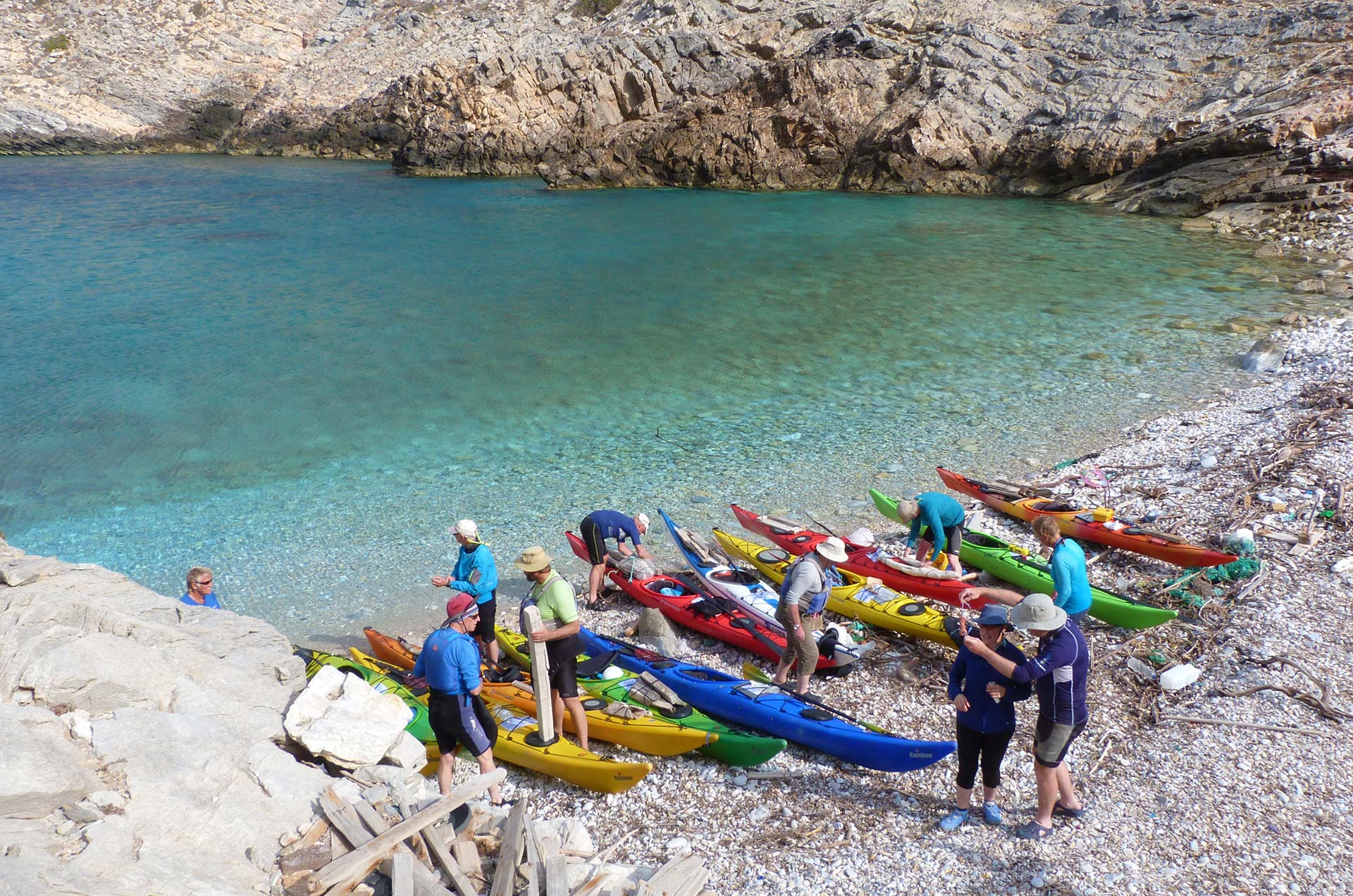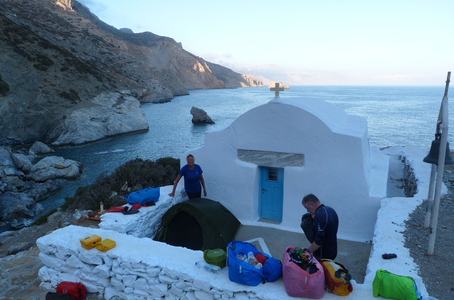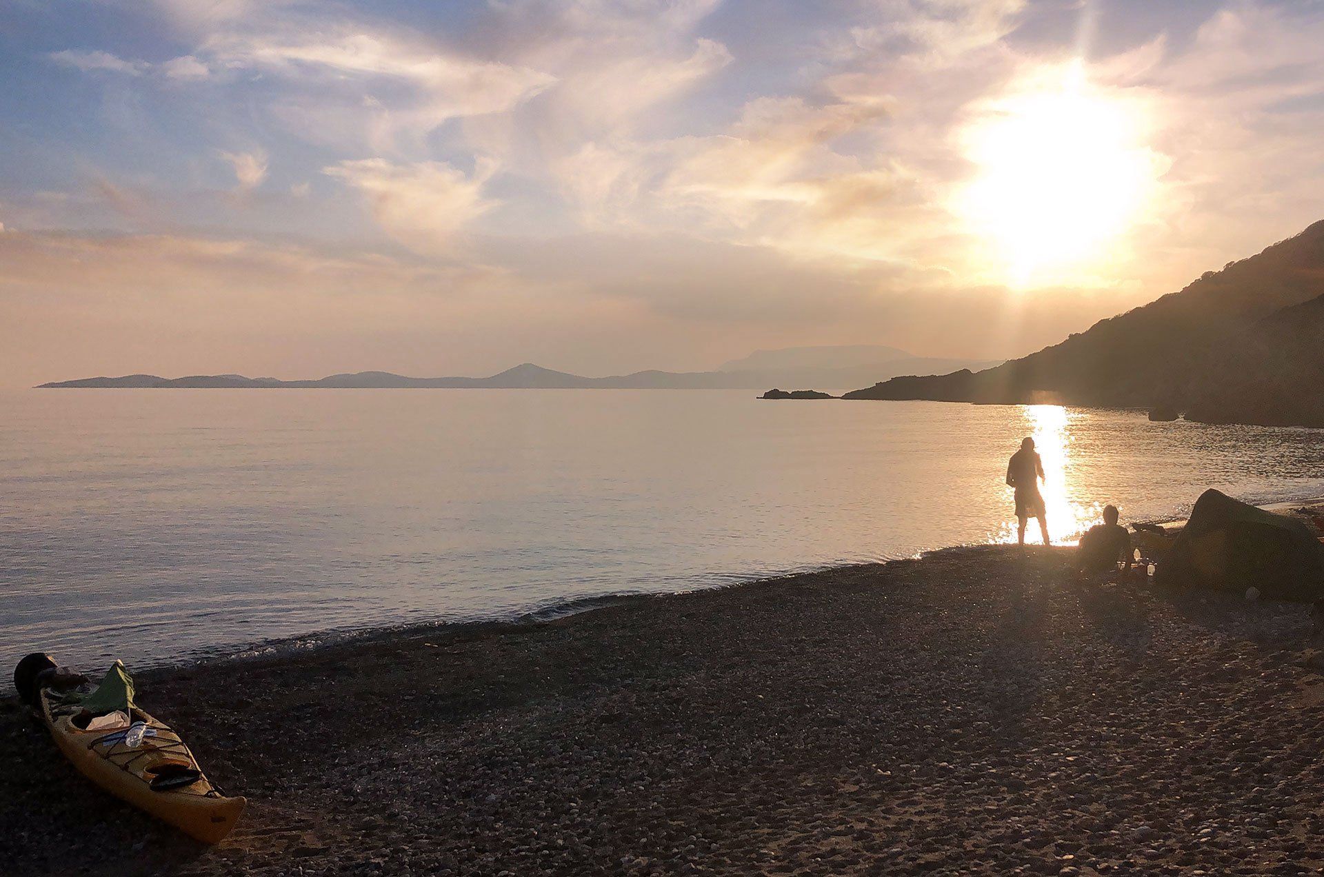 Anfang November 2021 hatte Rod Feldtmann von Sea Kayak Milos (www.seakayakgreece.com) geladen und 11 salzwasserfeste Kanuten aus UK, Dänemark, Österreich, Schottland, Irland, den Niederlanden und Deutschland (Martin, where is your beach towel?) waren seinem Ruf gefolgt, Amorgos und einige der teils unbewohnten kleinen Kykladen zu umrunden. Eine weitere traumhafte Woche im Seekajak, in der alles dabei war: einsame Strände zum Zelten; wärmende Lagerfeuer; gemütliches Aufkochen am Abend begleitet von dem einen oder anderen Glas Wein; lange Paddeltage an beeindruckenden Steilküsten; das – einem Schwalbennest gleich – in die Felswand hineingeklebte Kloster Panagia Hozoviotissa und zwei Tage mit 6 bis 7 Windstärken. Gelegentliche Tavernenbesuche und zwei Einkaufsmöglichkeiten, um sich dem erhöhten Kalorienbedarf und dem nicht unerheblichen Trinkwasserbedarf stellen zu können, rundeten diese Kajakexpedition ab.