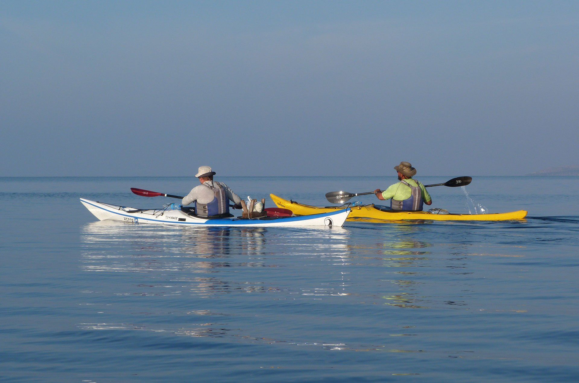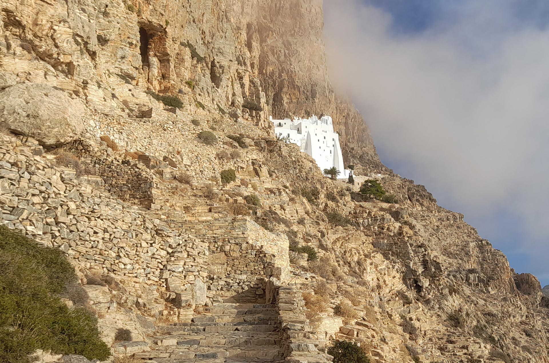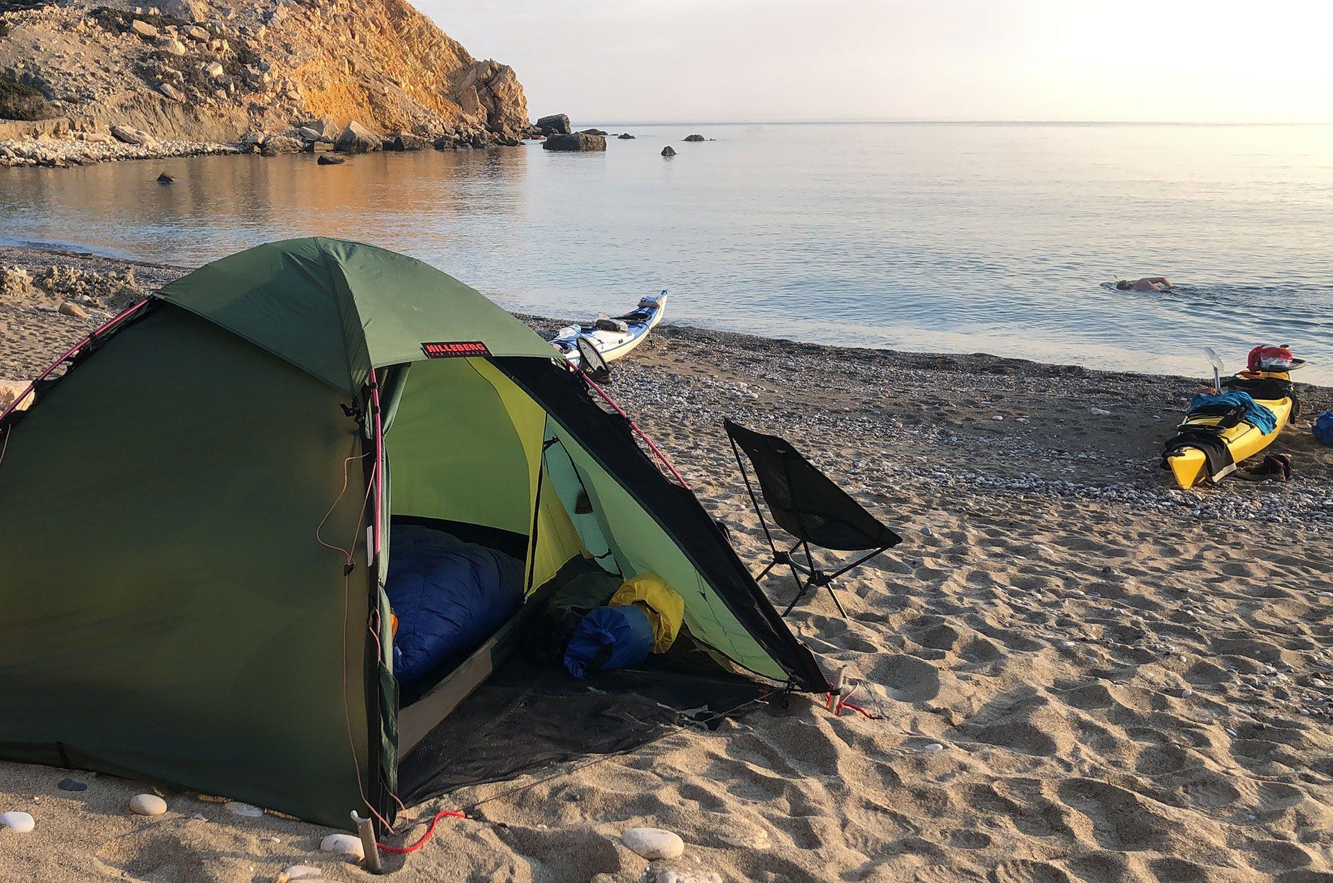 Anfang November 2021 hatte Rod Feldtmann von Sea Kayak Milos (www.seakayakgreece.com) geladen und 11 salzwasserfeste Kanuten aus UK, Dänemark, Österreich, Schottland, Irland, den Niederlanden und Deutschland (Martin, where is your beach towel?) waren seinem Ruf gefolgt, Amorgos und einige der teils unbewohnten kleinen Kykladen zu umrunden. Eine weitere traumhafte Woche im Seekajak, in der alles dabei war: einsame Strände zum Zelten; wärmende Lagerfeuer; gemütliches Aufkochen am Abend begleitet von dem einen oder anderen Glas Wein; lange Paddeltage an beeindruckenden Steilküsten; das – einem Schwalbennest gleich – in die Felswand hineingeklebte Kloster Panagia Hozoviotissa und zwei Tage mit 6 bis 7 Windstärken. Gelegentliche Tavernenbesuche und zwei Einkaufsmöglichkeiten, um sich dem erhöhten Kalorienbedarf und dem nicht unerheblichen Trinkwasserbedarf stellen zu können, rundeten diese Kajakexpedition ab.