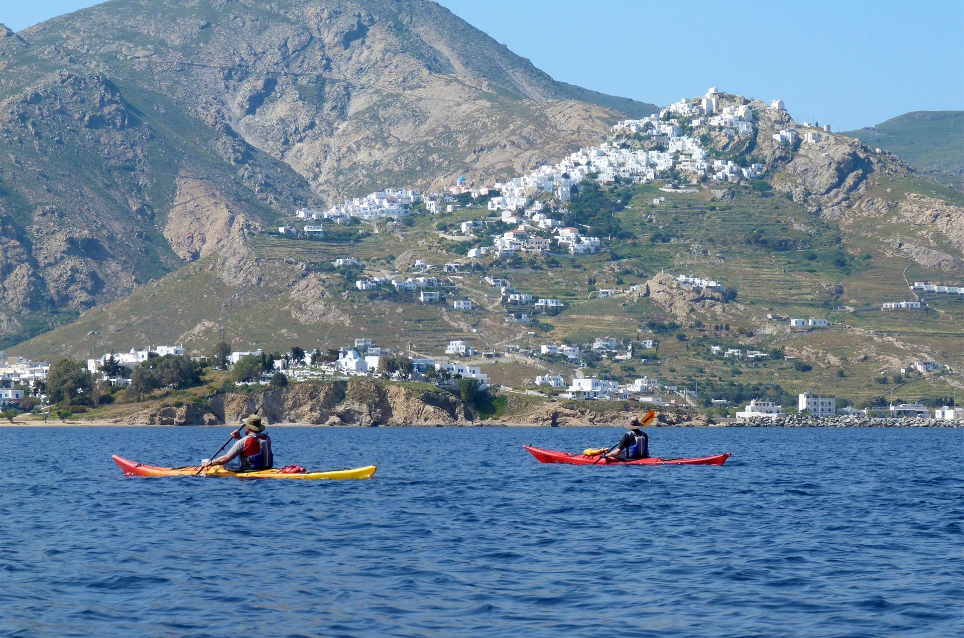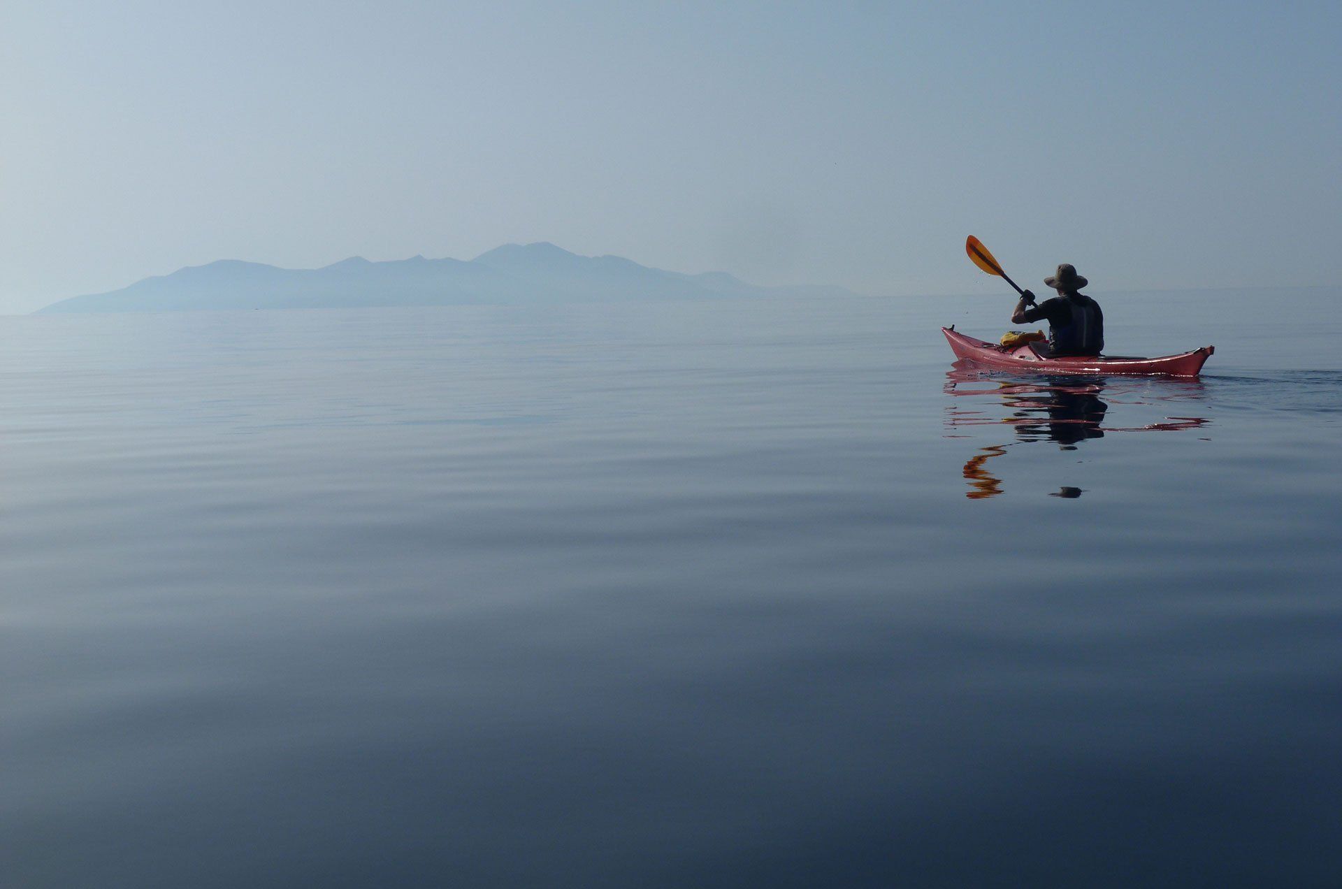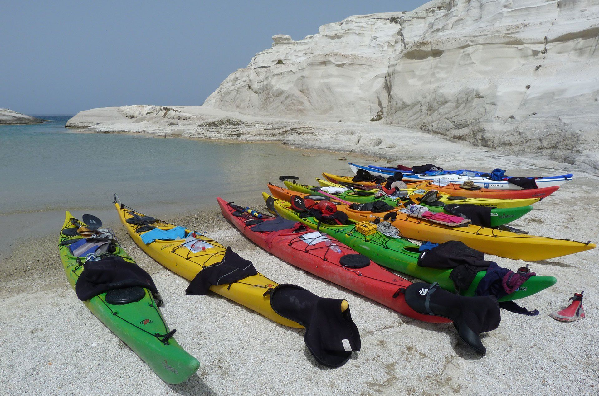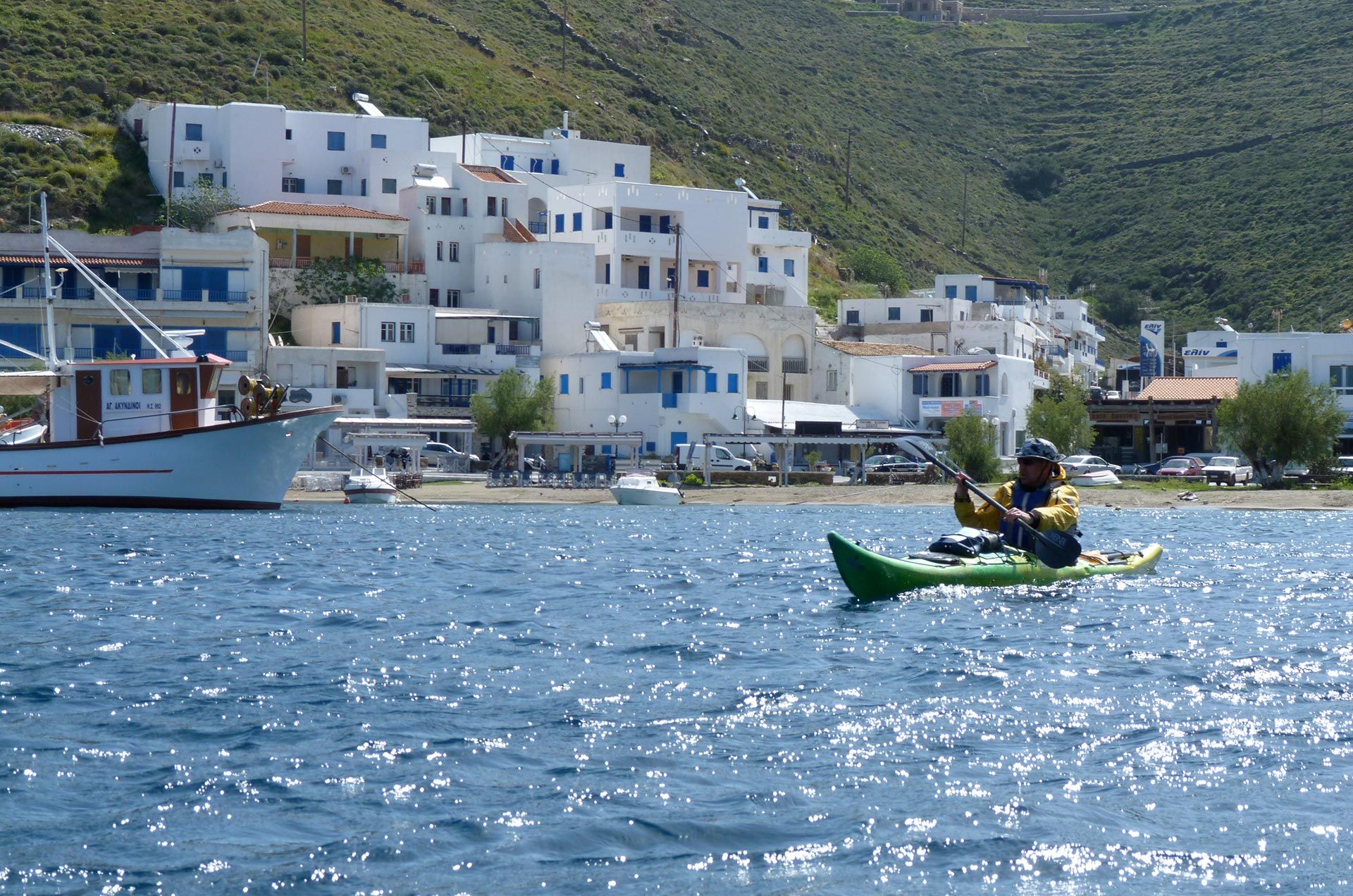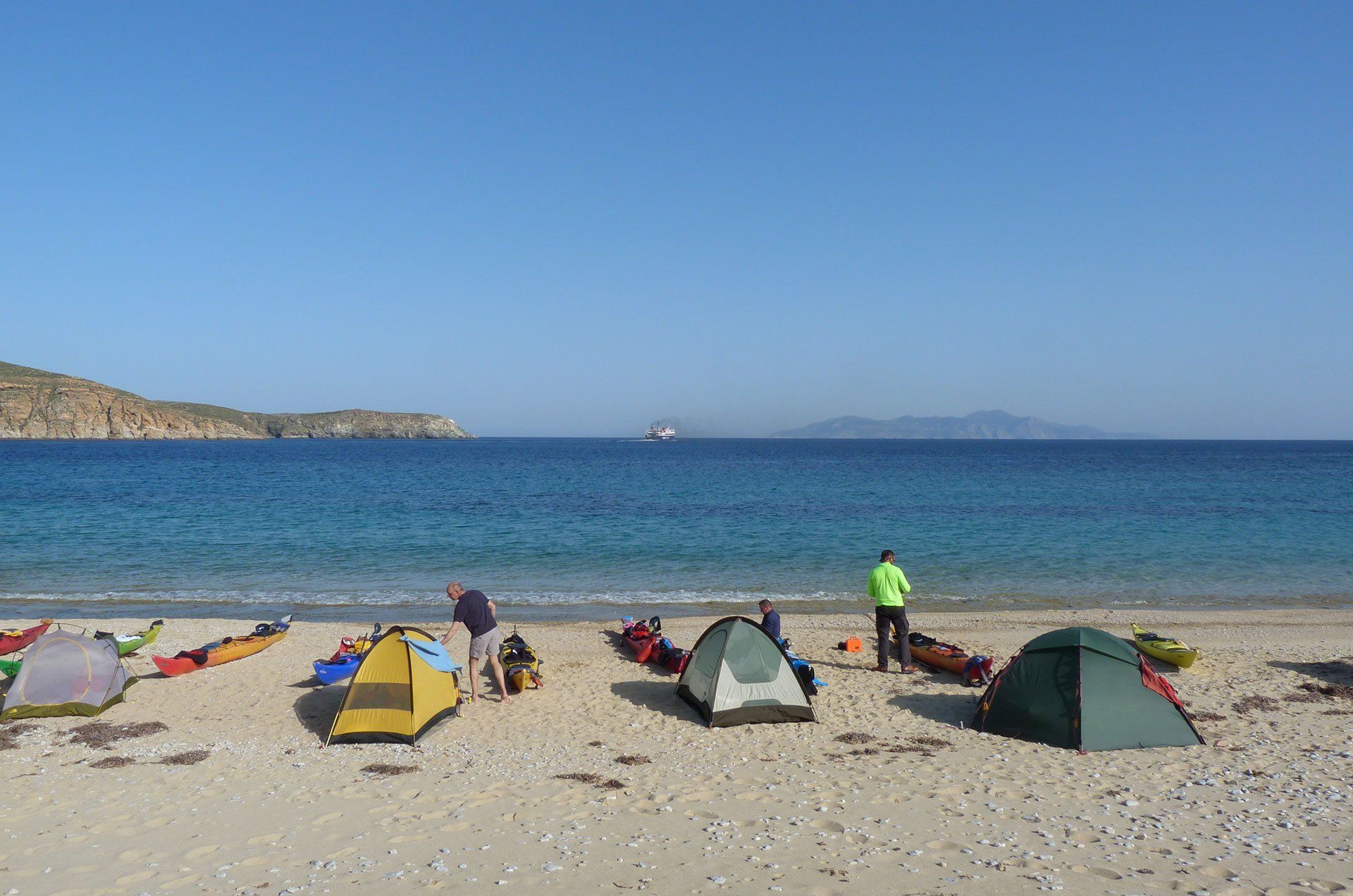Kap Sounion (südöstlich von Athen), Kea, Kithnos, Serifos, Sifnos, Poliegos, Milos: Eine weitere logische Kette von Inseln in der Ägäis, die eine großartige Paddelwoche von Nord nach Süd zulassen. In den ersten Stunden paddelten wir direkt unterhalb der berühmten Säulen des Poseidon-Marmortempels. Nach ca. 20 km erreicht man Kea, vor dessen Kanal 1916 das Schwesterschiff der Titanic – die Britannic – sank. Weiter ging es nach Kithnos. Eine Insel, die mit ihren unzählig kleinen Buchten ideale Verstecke für paddelnde Seenomaden vorhält. Der nächste Übernachtungsstop war Serifos. Auf dieser Insel wurde bereits seit Jahrhunderten Kupfer- und Eisenerz abgebaut. Sifnos, berühmt für seine Keramik, nahm uns gastfreundlich für die vorletzte Nacht unserer Tour auf. Ab hier paddelten wir auf bekannten Gewässern: Poliegos und letztendlich Milos, wo unser Island Hopping in einer uns wohlbekannten Taverne von Triovasalos endete.