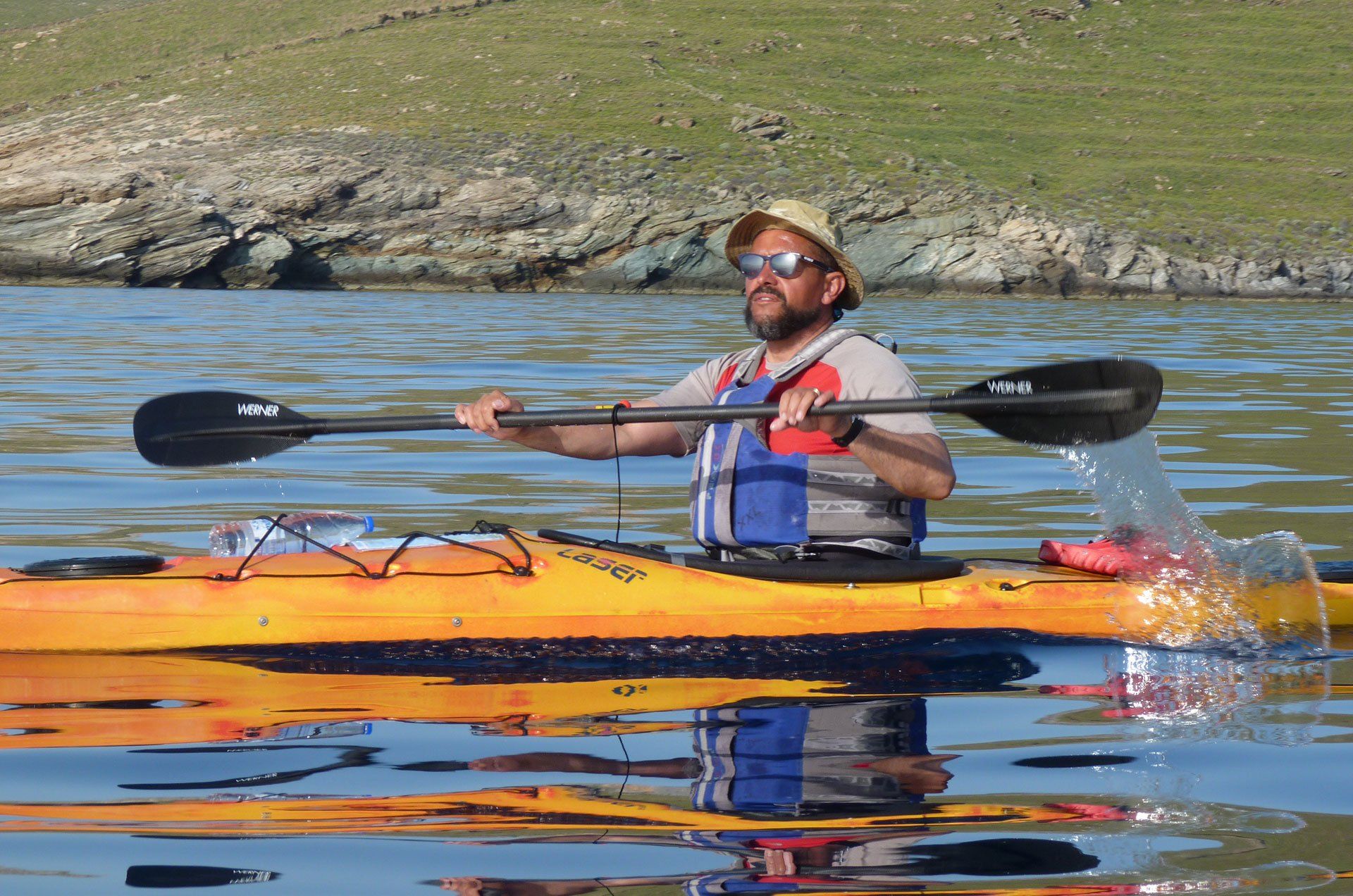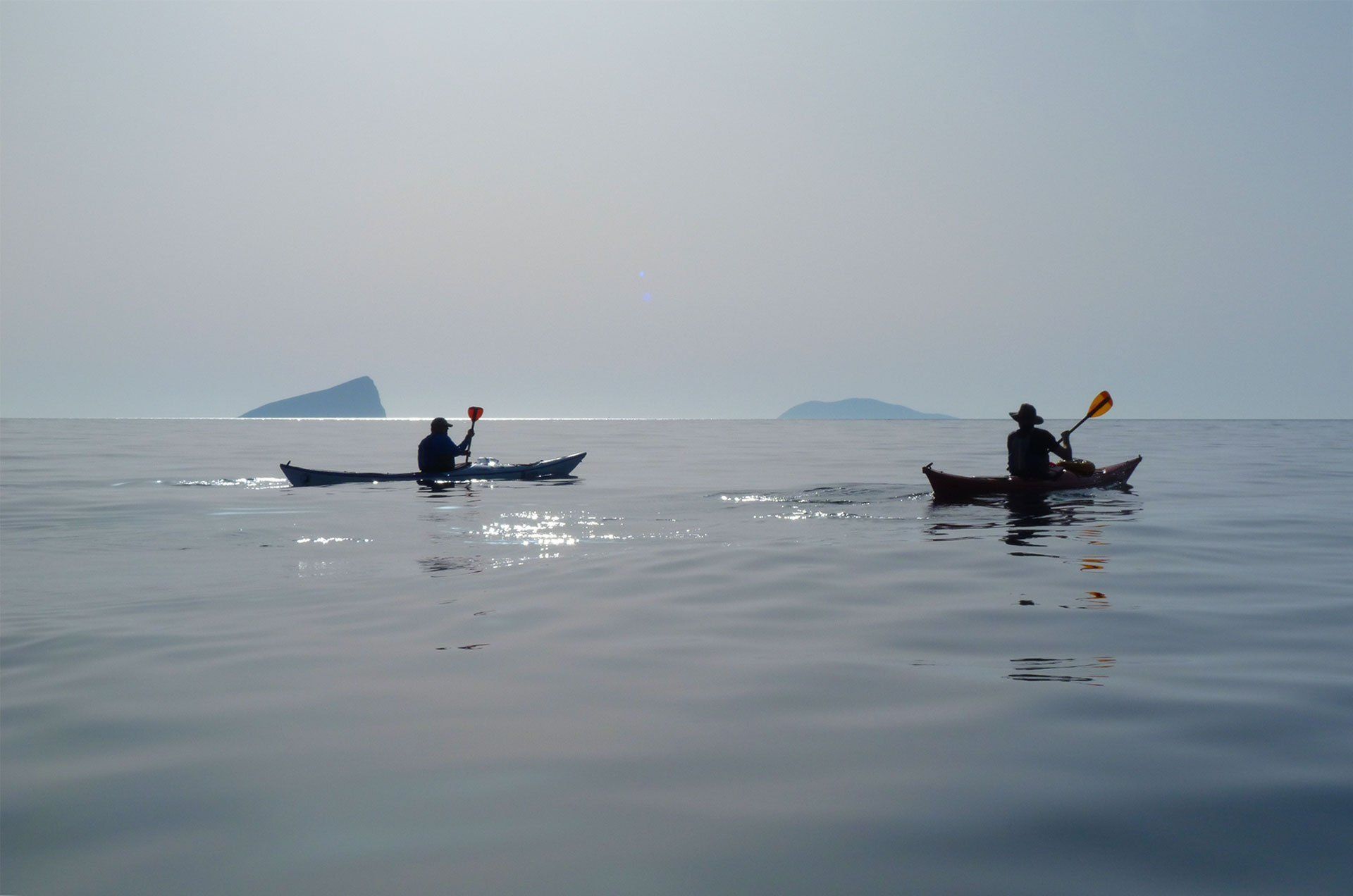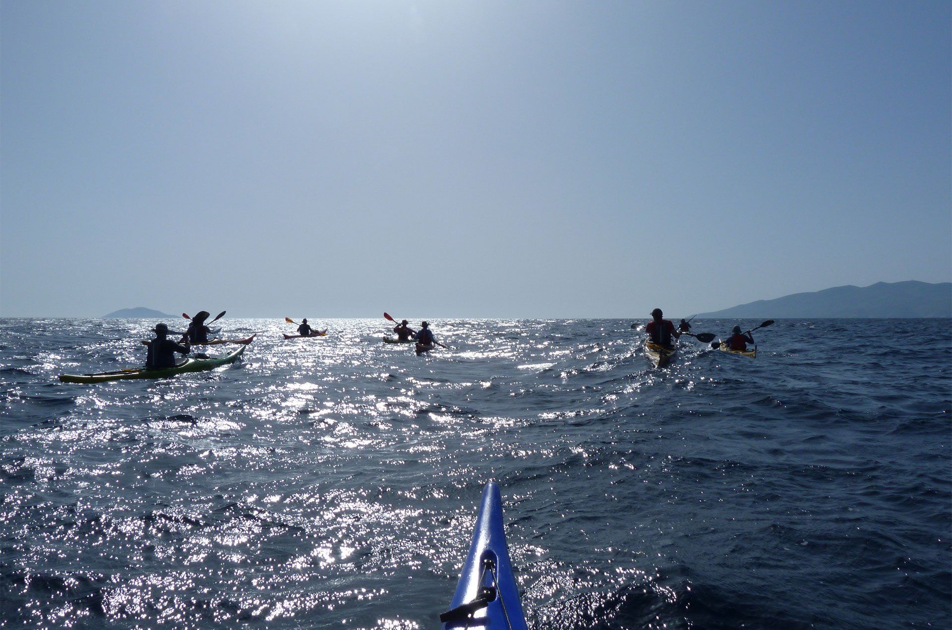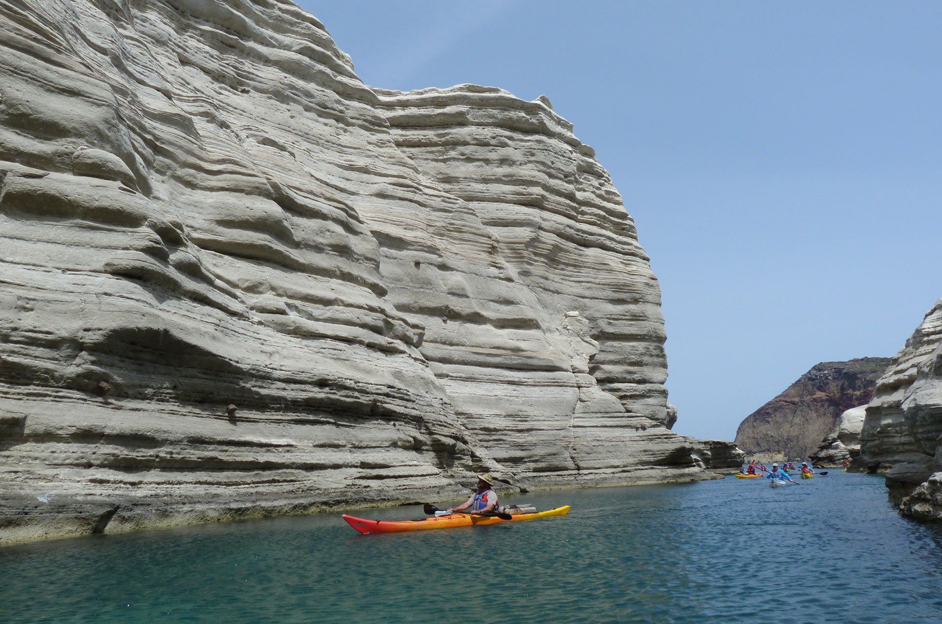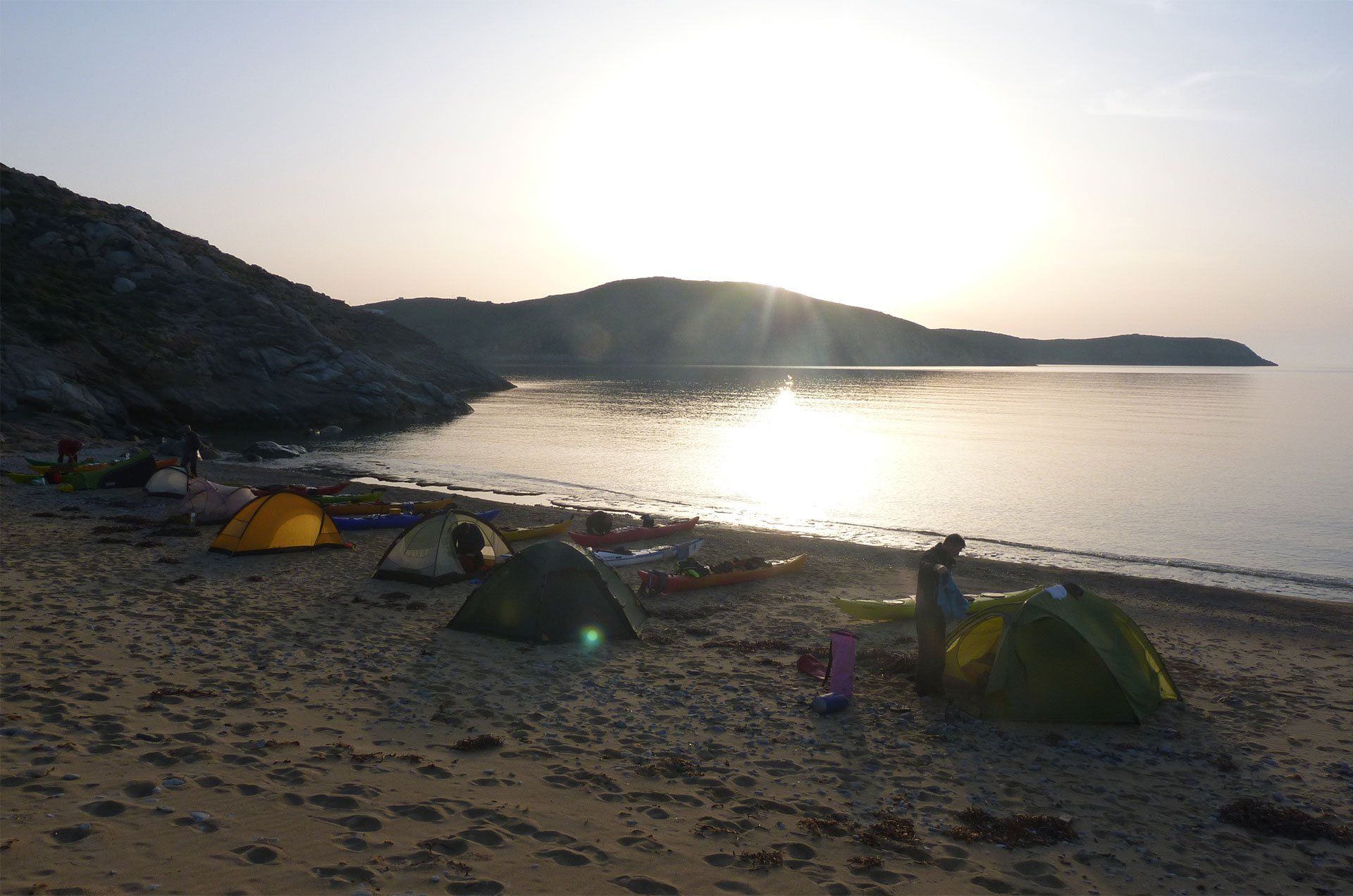 Kap Sounion (südöstlich von Athen), Kea, Kithnos, Serifos, Sifnos, Poliegos, Milos: Eine weitere logische Kette von Inseln in der Ägäis, die eine großartige Paddelwoche von Nord nach Süd zulassen. In den ersten Stunden paddelten wir direkt unterhalb der berühmten Säulen des Poseidon-Marmortempels. Nach ca. 20 km erreicht man Kea, vor dessen Kanal 1916 das Schwesterschiff der Titanic – die Britannic – sank. Weiter ging es nach Kithnos. Eine Insel, die mit ihren unzählig kleinen Buchten ideale Verstecke für paddelnde Seenomaden vorhält. Der nächste Übernachtungsstop war Serifos. Auf dieser Insel wurde bereits seit Jahrhunderten Kupfer- und Eisenerz abgebaut. Sifnos, berühmt für seine Keramik, nahm uns gastfreundlich für die vorletzte Nacht unserer Tour auf. Ab hier paddelten wir auf bekannten Gewässern: Poliegos und letztendlich Milos, wo unser Island Hopping in einer uns wohlbekannten Taverne von Triovasalos endete.