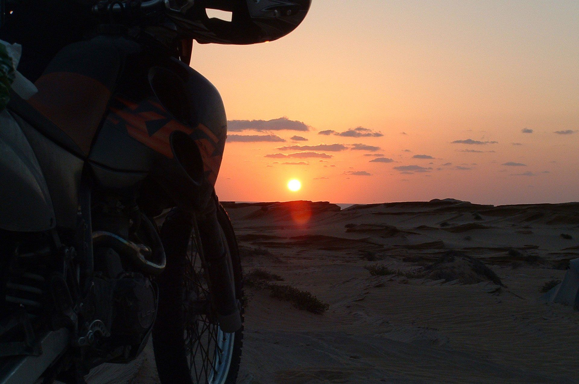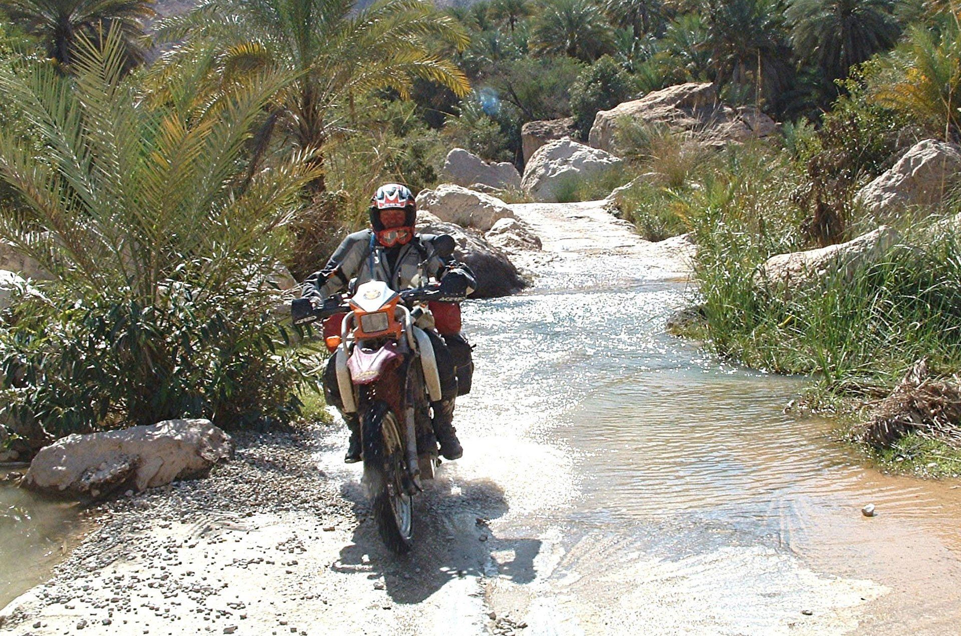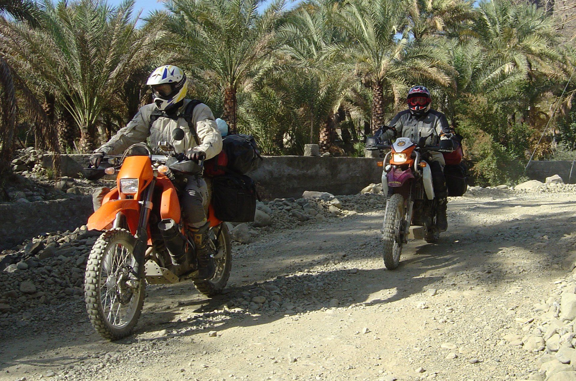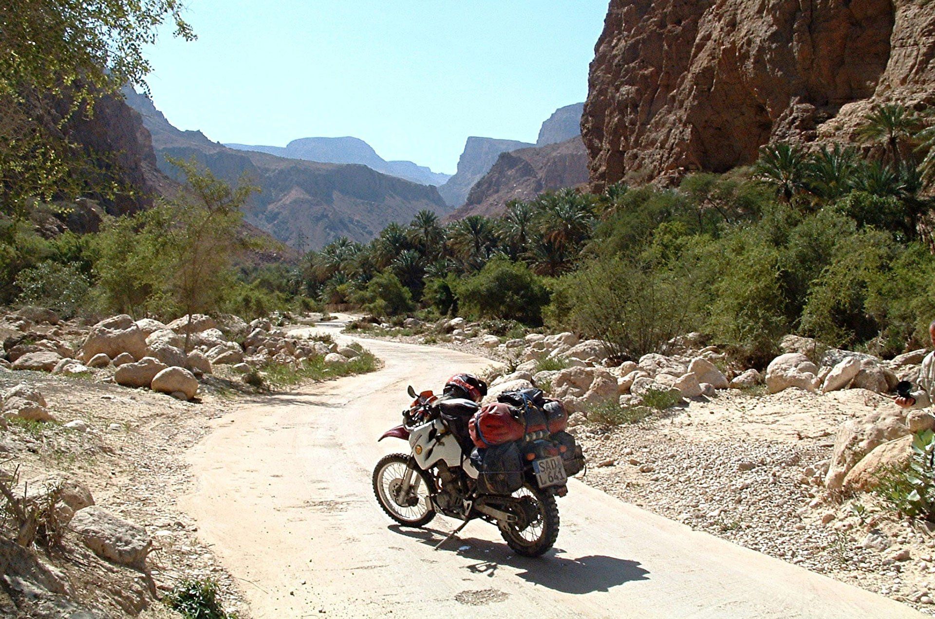 Orient, der in den zeitlichen Rahmen eines normalen Motorrad-Jahresurlaubes passt. Und Dank des perfekten Bike Handlings von Klaus Demel (www.einfachlosfahren.de) ist auch die Vorbereitung mit der Abgabe der Bikes in Göppingen erledigt. Abholen der Bikes in der Free Trading Zone, Dubai und los geht's: Muscat Area mit den angrenzenden Bergen und Wadis, Viehmarkt in Nizwa, Durchquerung der Wahiba Sands, damals zumindest noch viel Schotter bis Salalah, Weihrauchbäume, die Grenze zum Jemen und wieder zurück. Und da die Rückfahrt auf Teer mit einem abgefahrenen Michelin Dessert und einer KTM 640 LC4 keinen Spaß macht, lieber länger im Sand spielen und auf der Ladefläche eines Toyotas die 1100 km zurück nach Muscat.