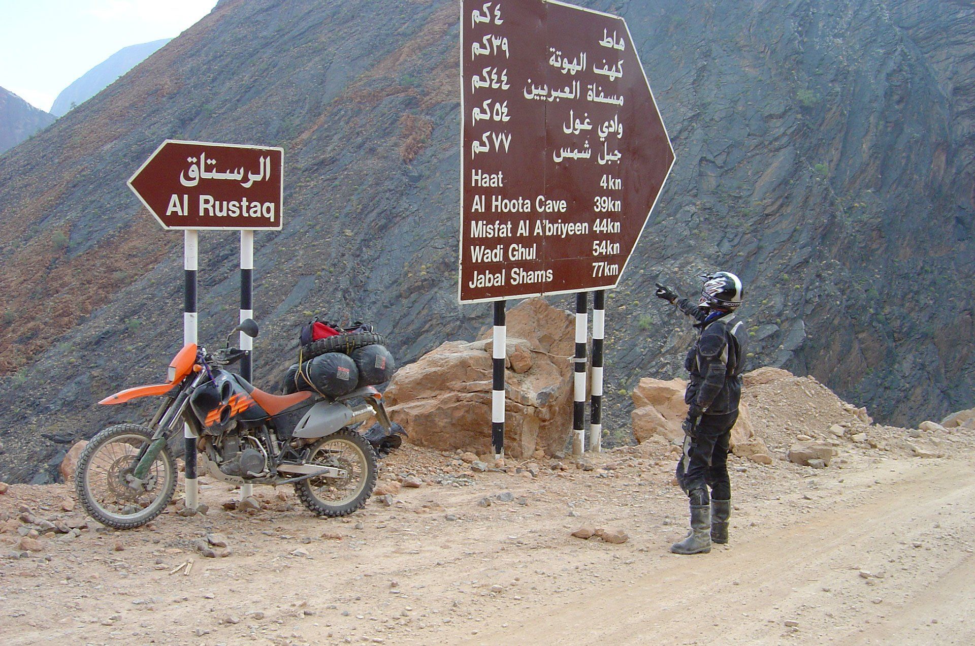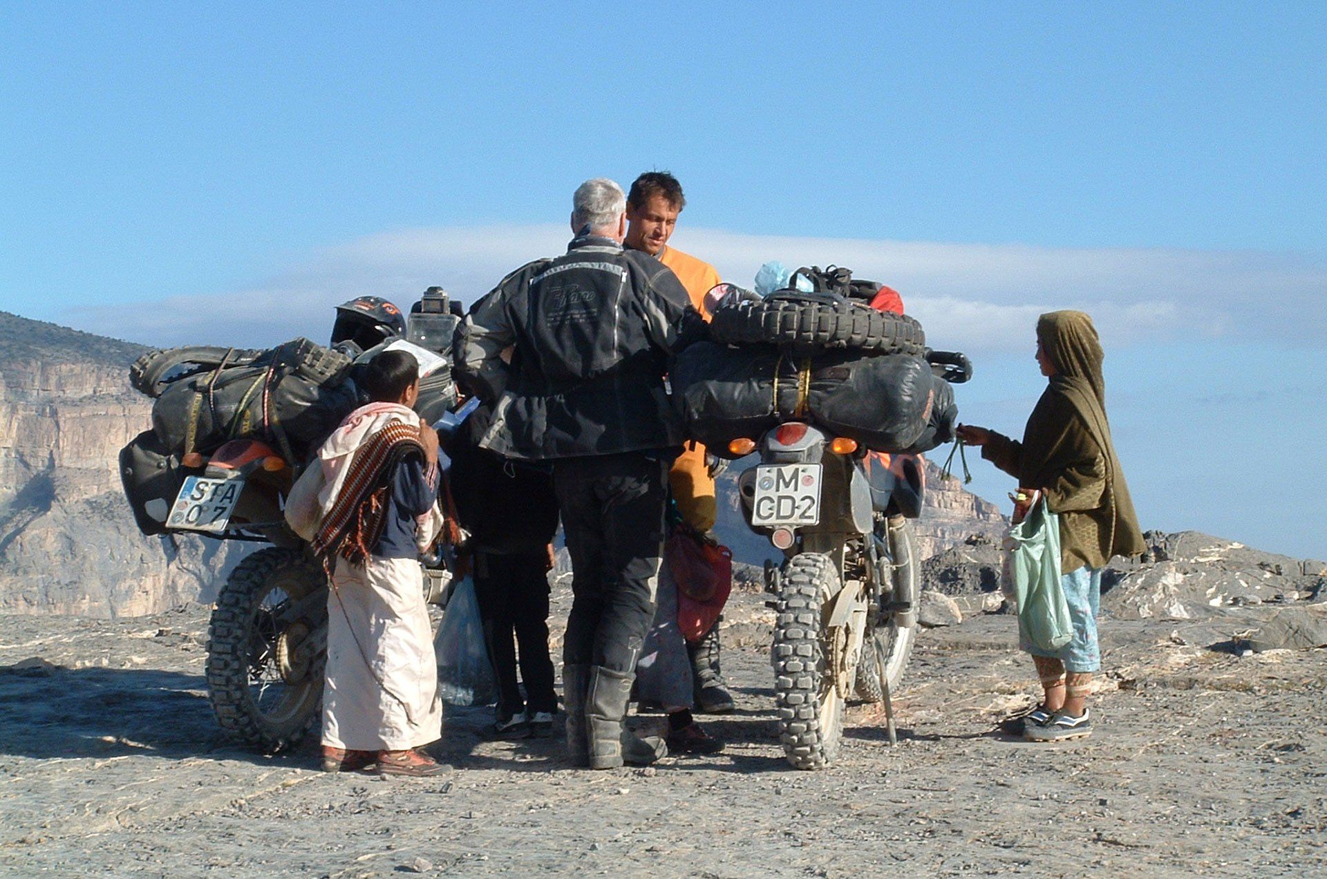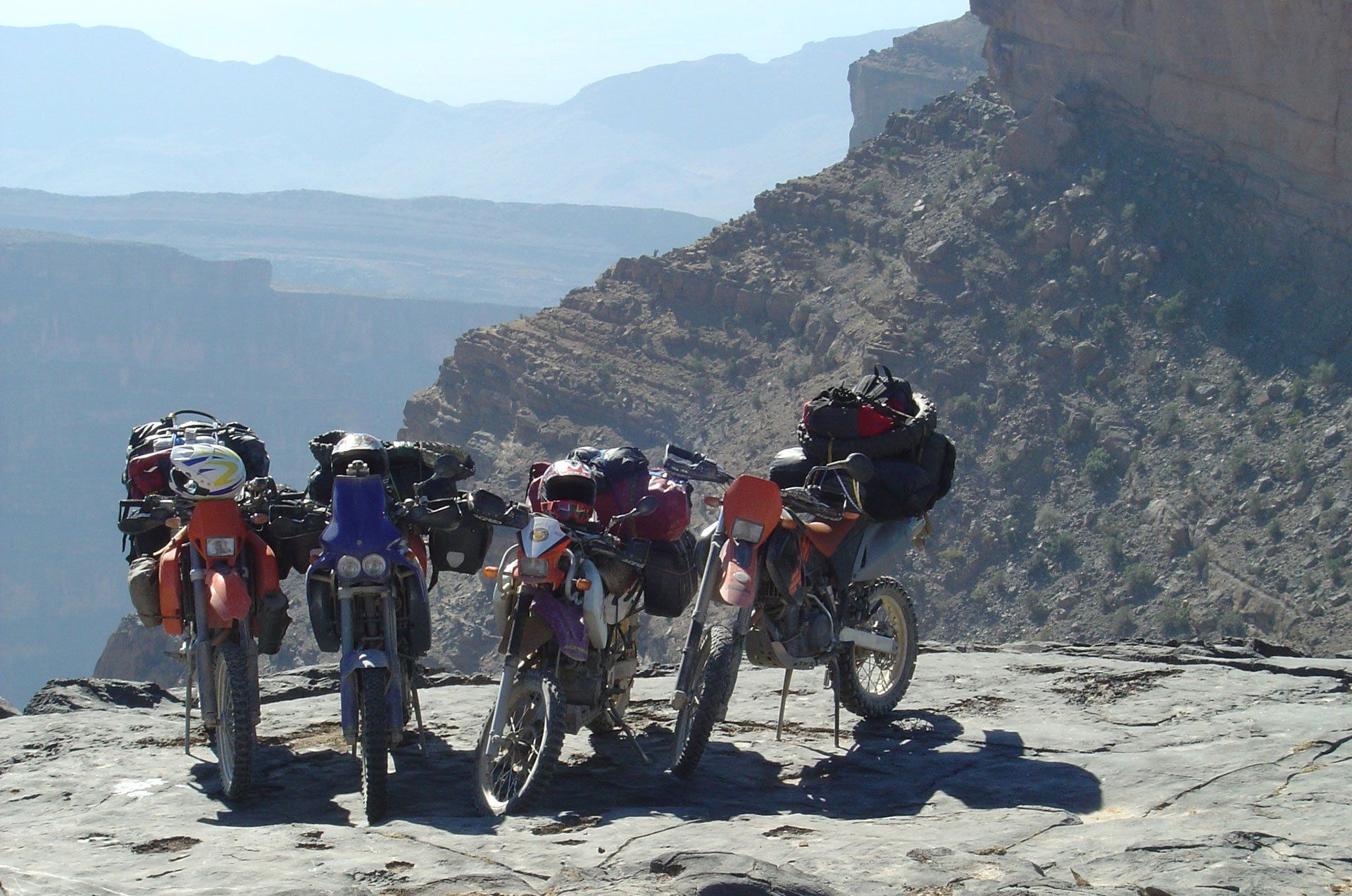 Orient, der in den zeitlichen Rahmen eines normalen Motorrad-Jahresurlaubes passt. Und Dank des perfekten Bike Handlings von Klaus Demel (www.einfachlosfahren.de) ist auch die Vorbereitung mit der Abgabe der Bikes in Göppingen erledigt. Abholen der Bikes in der Free Trading Zone, Dubai und los geht's: Muscat Area mit den angrenzenden Bergen und Wadis, Viehmarkt in Nizwa, Durchquerung der Wahiba Sands, damals zumindest noch viel Schotter bis Salalah, Weihrauchbäume, die Grenze zum Jemen und wieder zurück. Und da die Rückfahrt auf Teer mit einem abgefahrenen Michelin Dessert und einer KTM 640 LC4 keinen Spaß macht, lieber länger im Sand spielen und auf der Ladefläche eines Toyotas die 1100 km zurück nach Muscat.