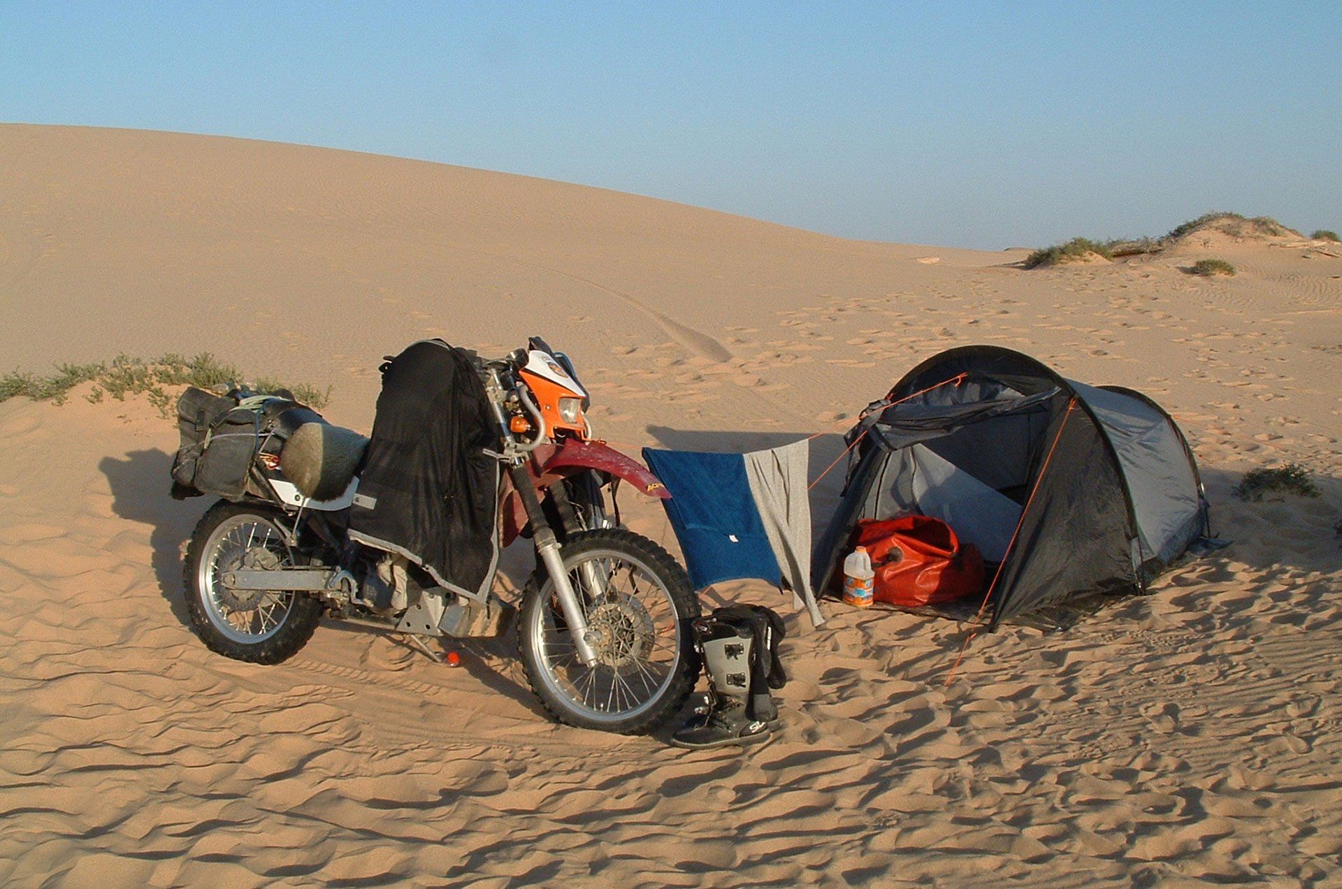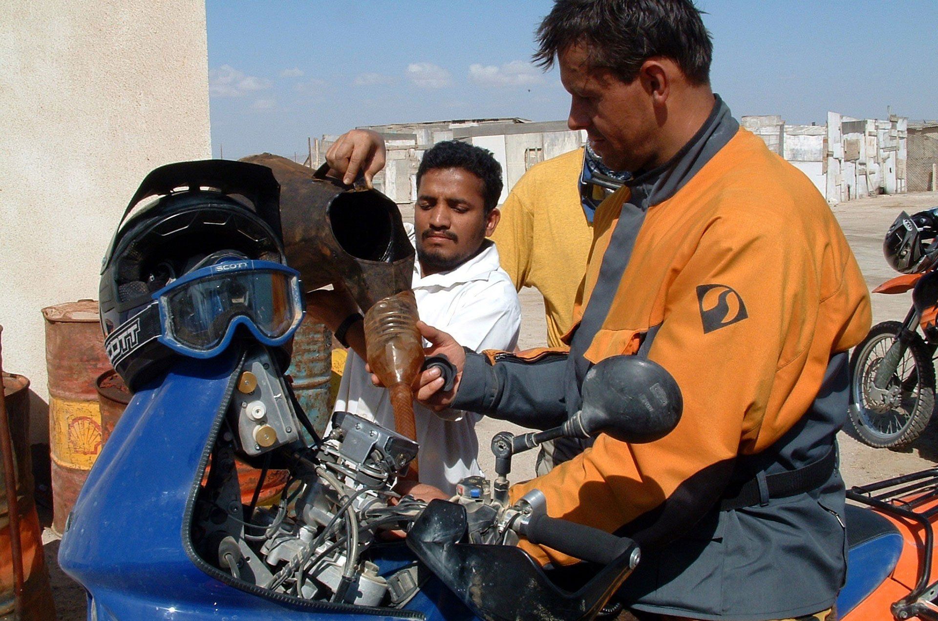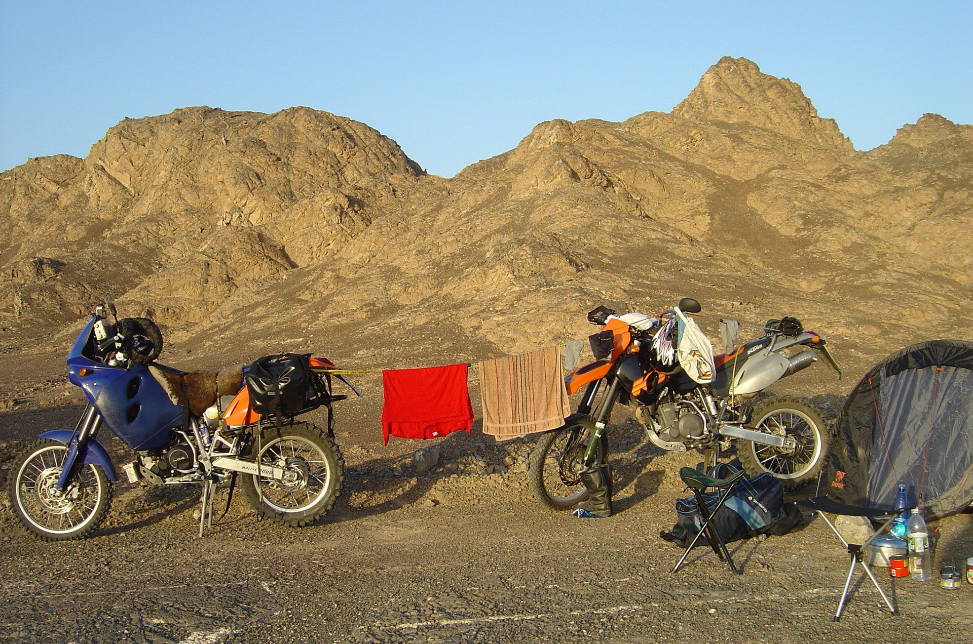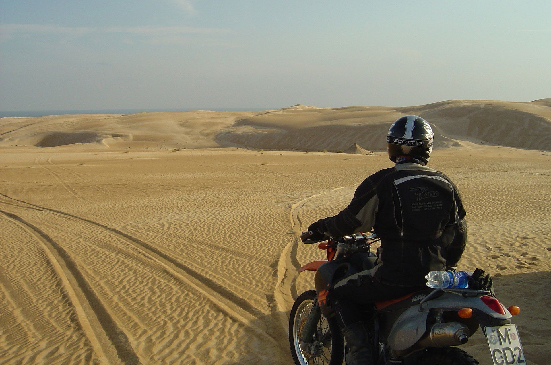 Orient, der in den zeitlichen Rahmen eines normalen Motorrad-Jahresurlaubes passt. Und Dank des perfekten Bike Handlings von Klaus Demel (www.einfachlosfahren.de) ist auch die Vorbereitung mit der Abgabe der Bikes in Göppingen erledigt. Abholen der Bikes in der Free Trading Zone, Dubai und los geht's: Muscat Area mit den angrenzenden Bergen und Wadis, Viehmarkt in Nizwa, Durchquerung der Wahiba Sands, damals zumindest noch viel Schotter bis Salalah, Weihrauchbäume, die Grenze zum Jemen und wieder zurück. Und da die Rückfahrt auf Teer mit einem abgefahrenen Michelin Dessert und einer KTM 640 LC4 keinen Spaß macht, lieber länger im Sand spielen und auf der Ladefläche eines Toyotas die 1100 km zurück nach Muscat.