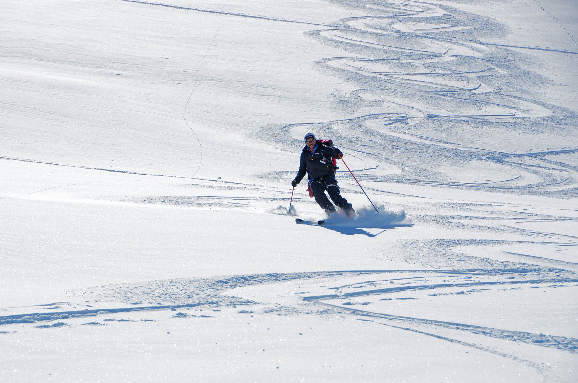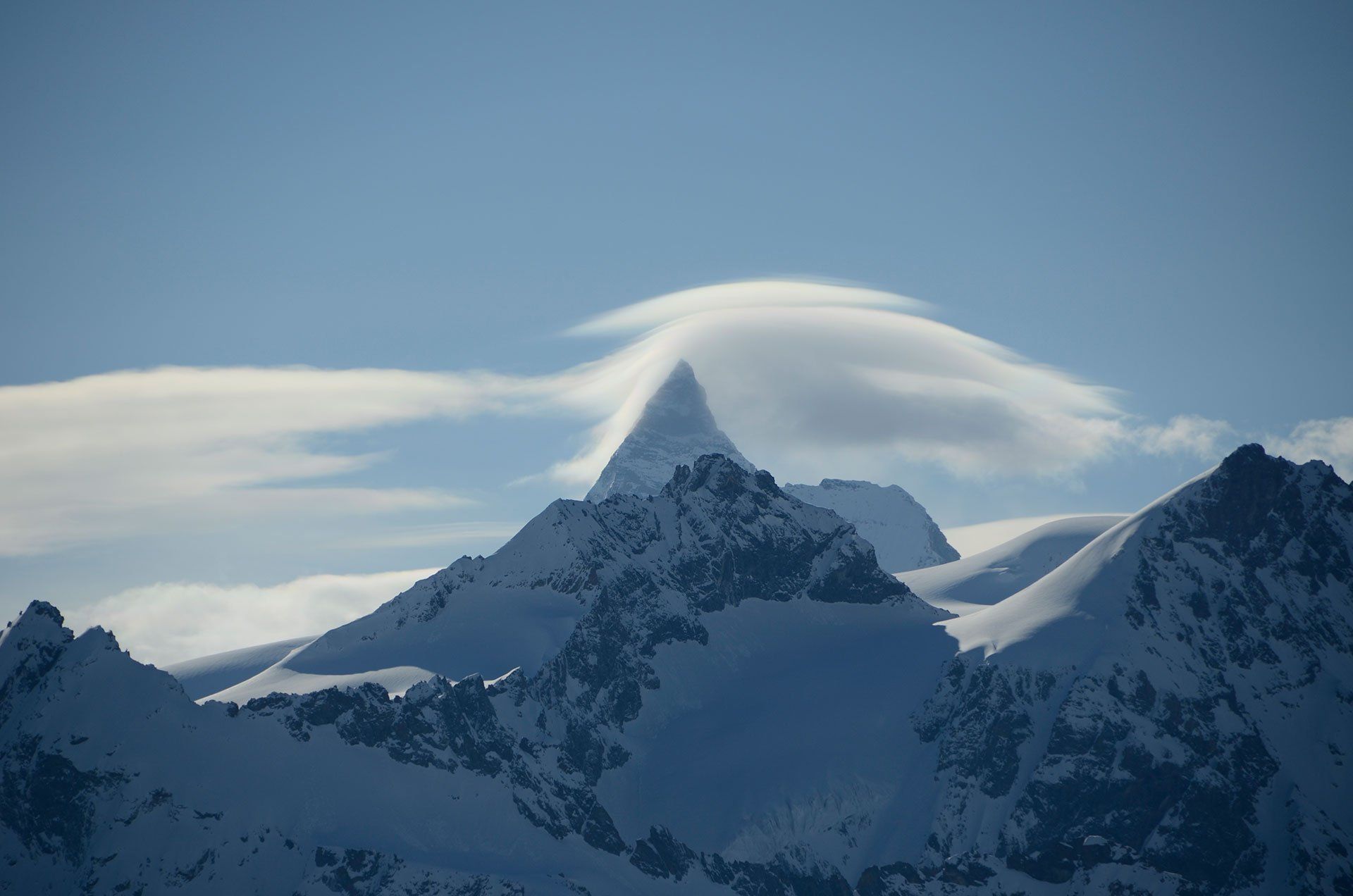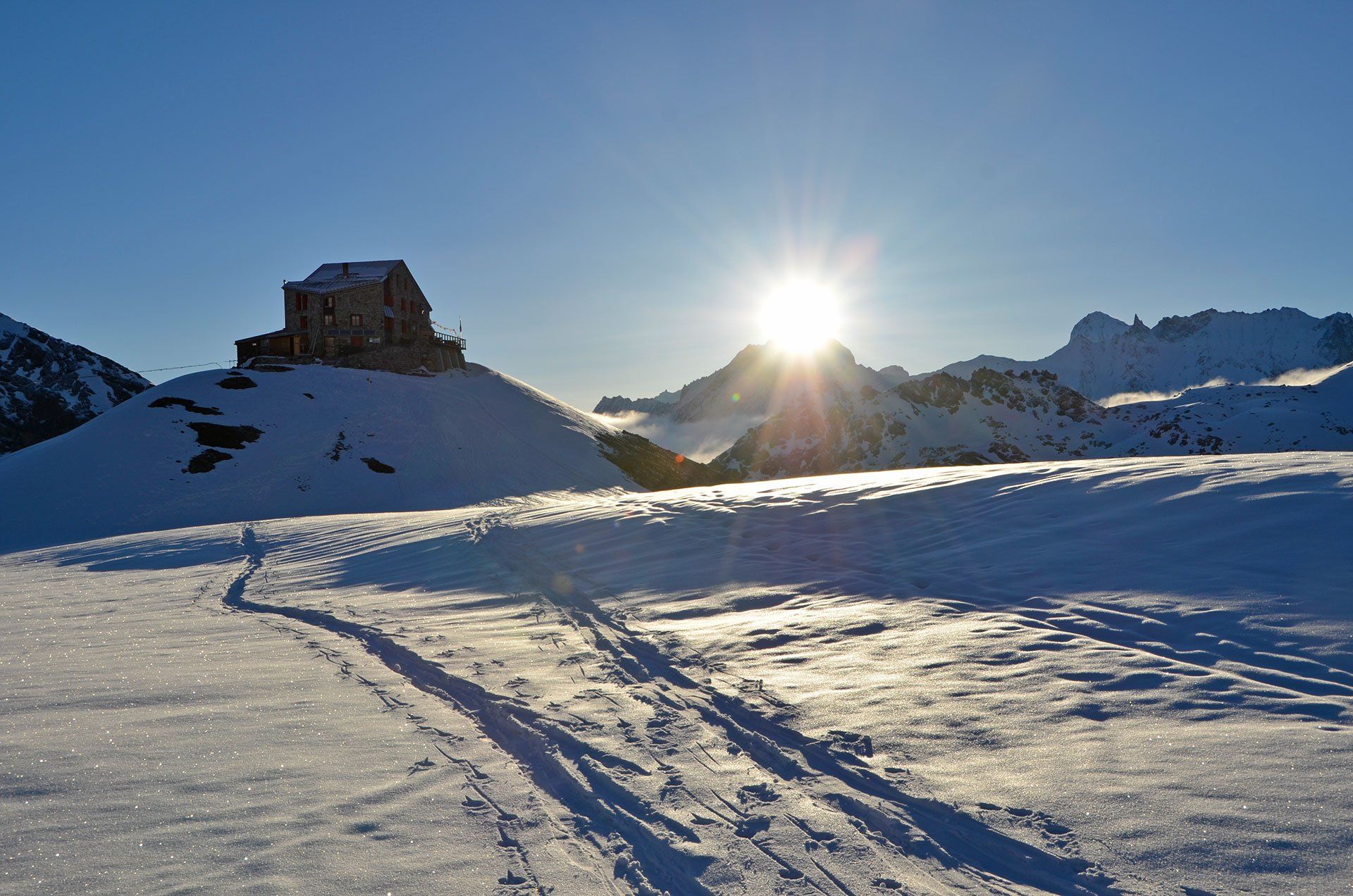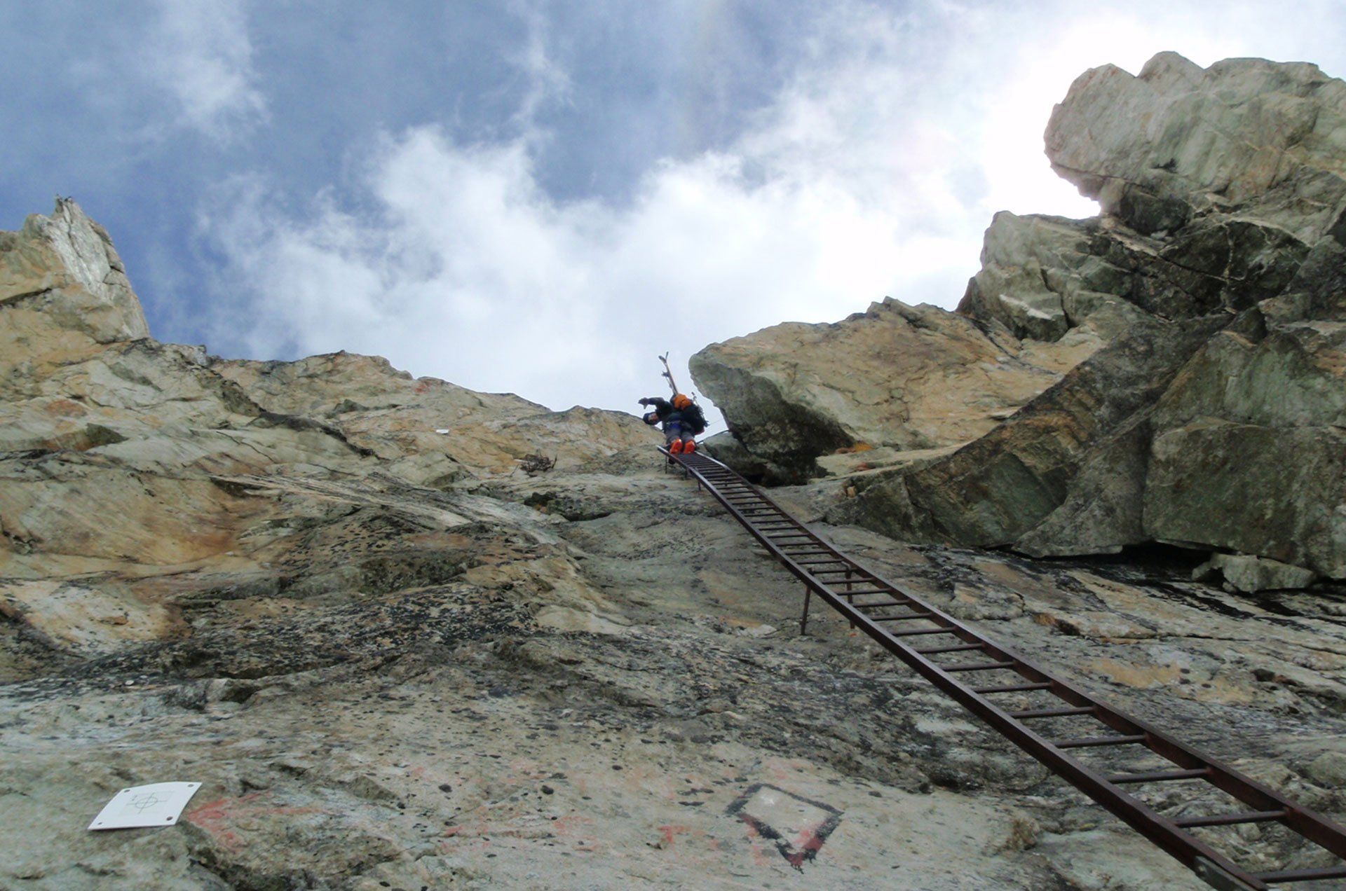 Am Talschluss des Val des Dix in den Walliser Alpen erhebt sich mit 3870 m der Mont Blanc de Cheilon. Ein sehr lohnender Skiberg, nur das letzte Stück bis zum Gipfel muss zu Fuß in Angriff genommen werden. Auch der Hüttenzustieg zur Cabane des Dix von Arolla aus hat’s in sich: Der Übergang über den Pas de Chèvres erfolgt über einige luftige Leitern.
