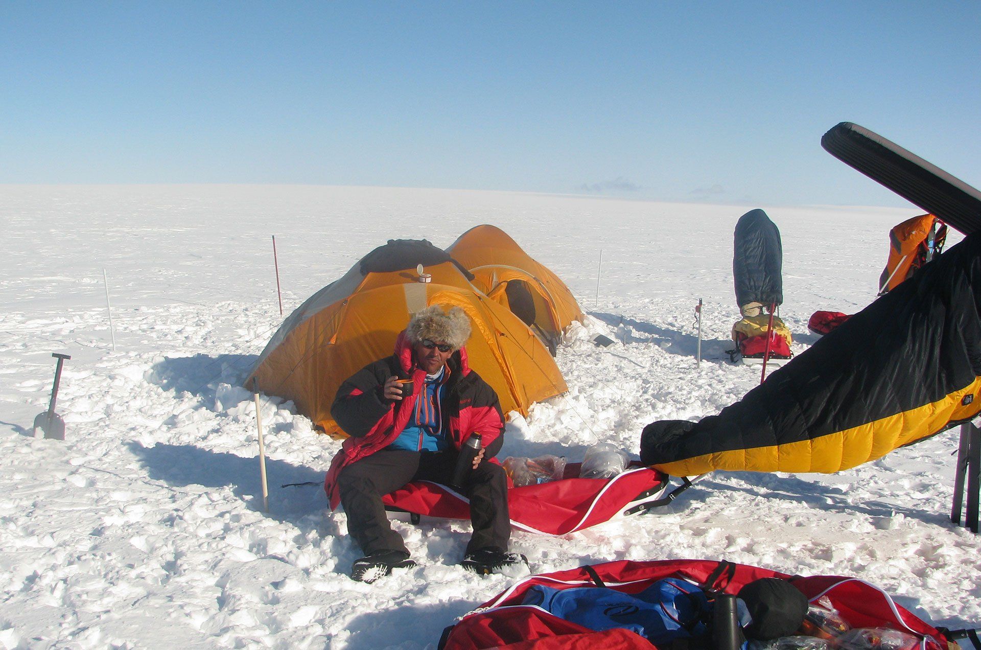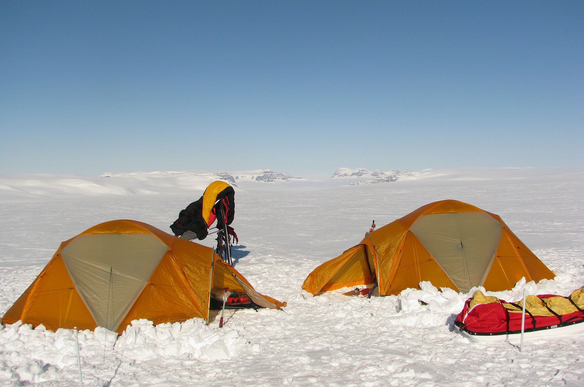 Stille hören, den ganzen Tag vom Sturm angebrüllt und durchgeschüttelt werden, der einzige Rückzugsort das Zelt und der warme Daunenschlafsack, Tage lang keine vertikalen Linien sehen, Basalbedürfnisse: Hunger, Durst, Müdigkeit, Schutz – das ist Grönland!