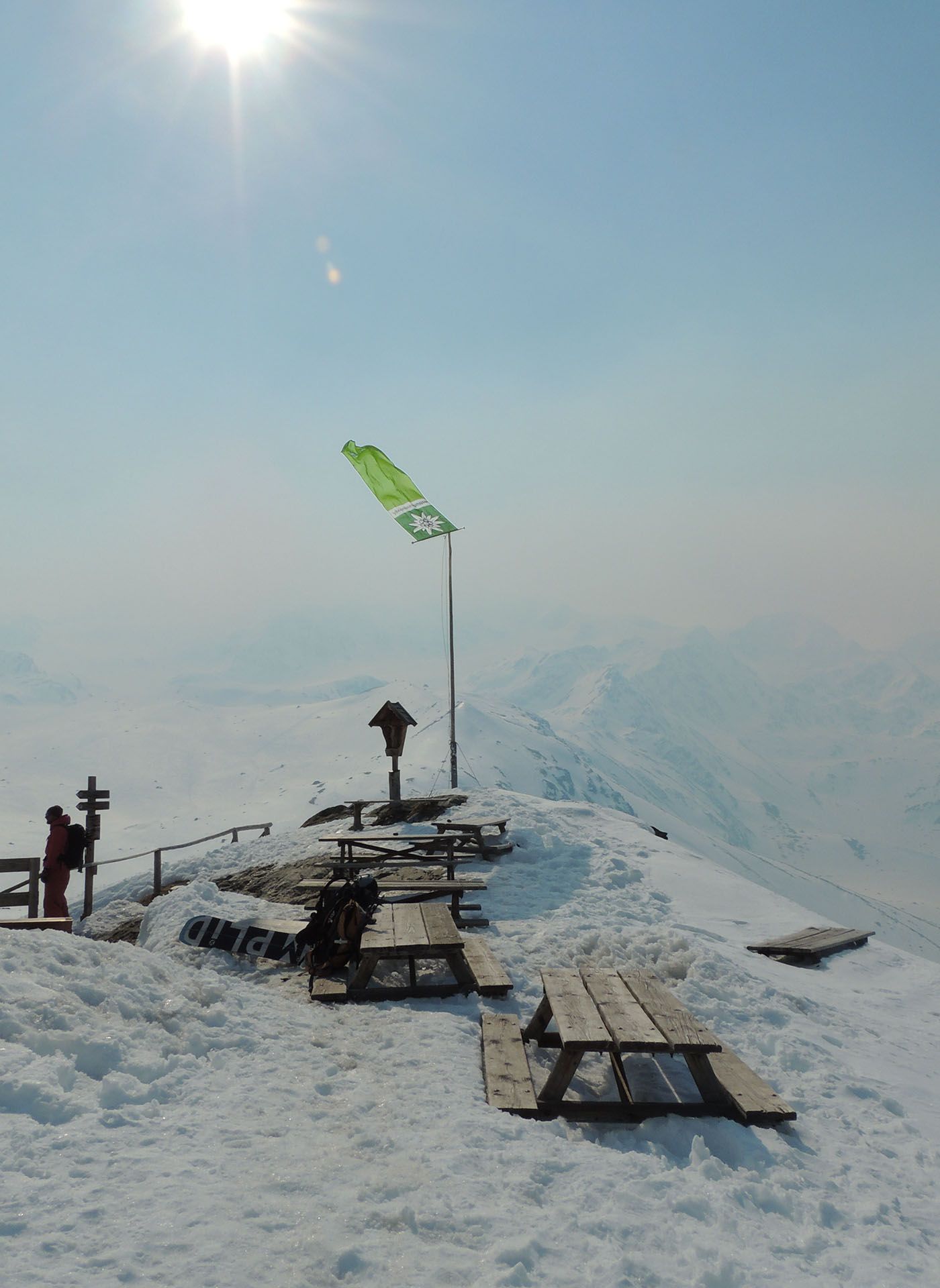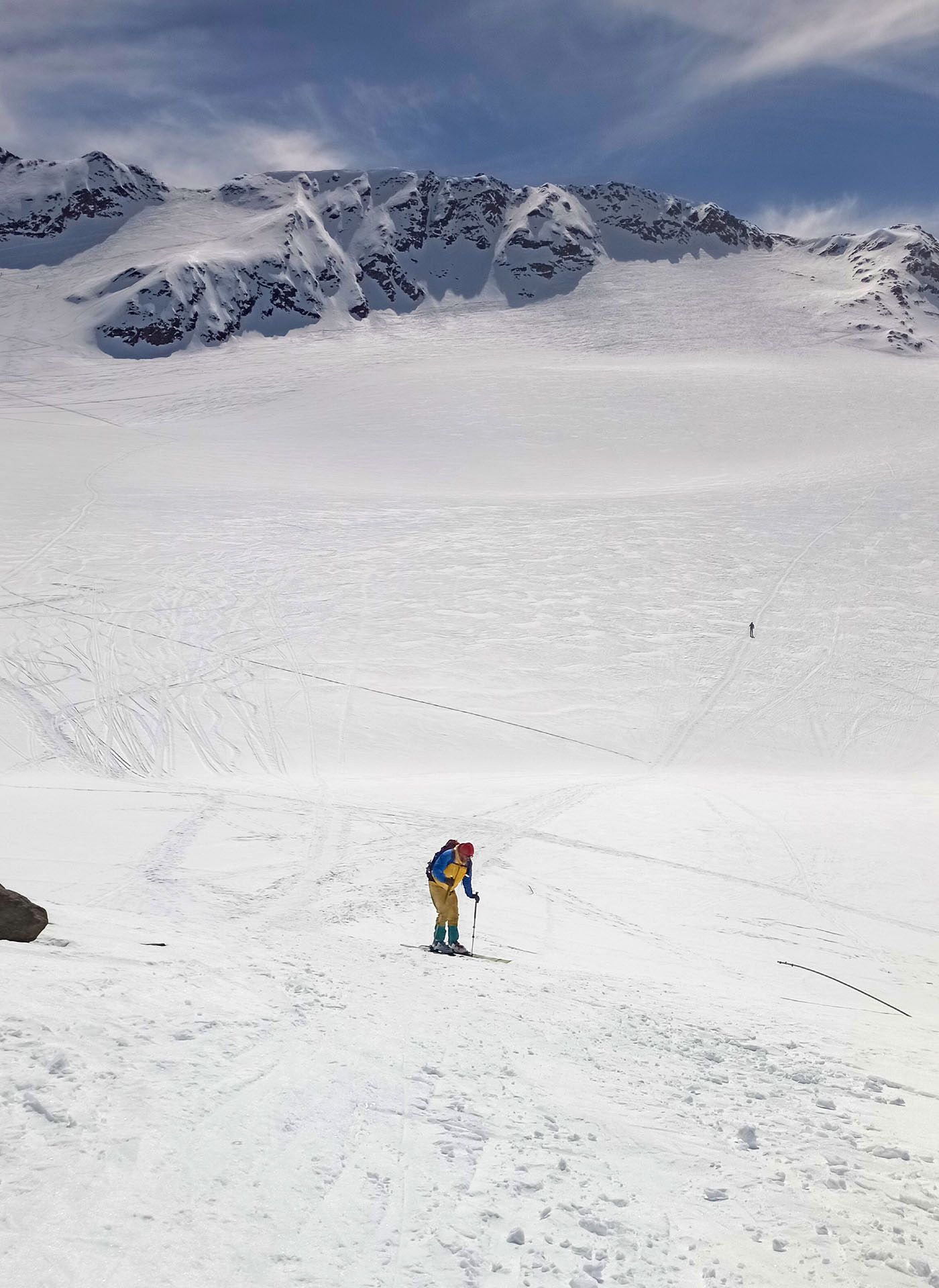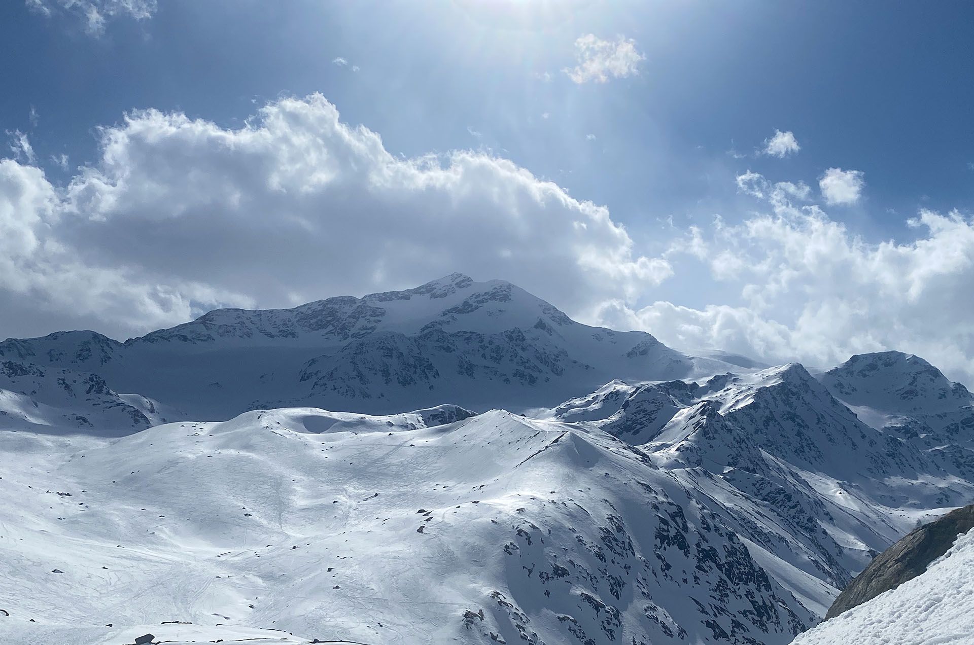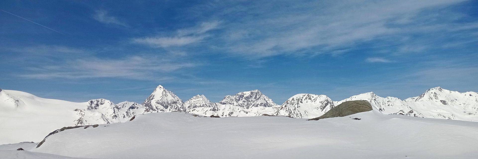 Da es so ganz ohne Hütte dann doch nicht geht, sind wir am dritten Tag unserer Tourenwoche auf die Martellerhütte (2585 m) umgezogen bzw. aufgestiegen. Diese hochalpine Hütte des Südtiroler Alpenvereins bietet einen atemberaubenden Ausblick auf die Zufallspitzen. Der Monte Cevedale, mit 3769 m der dritthöchste Gipfel der Ortler Alpen, versteckt sich etwas hinter diesen Gipfeln. Die Martellerhütte ist allerdings auch Ausgangspunkt für eine eher gemütliche aber lohnende Skitour auf die Köllkuppe (Cima Marmotta) am Marteller Hauptkamm. Belohnt wird der Aufstieg mit einer grandiosen Rundumsicht. Alles in allem ein echter Seniorenausflug ... obber schee wor’s.
