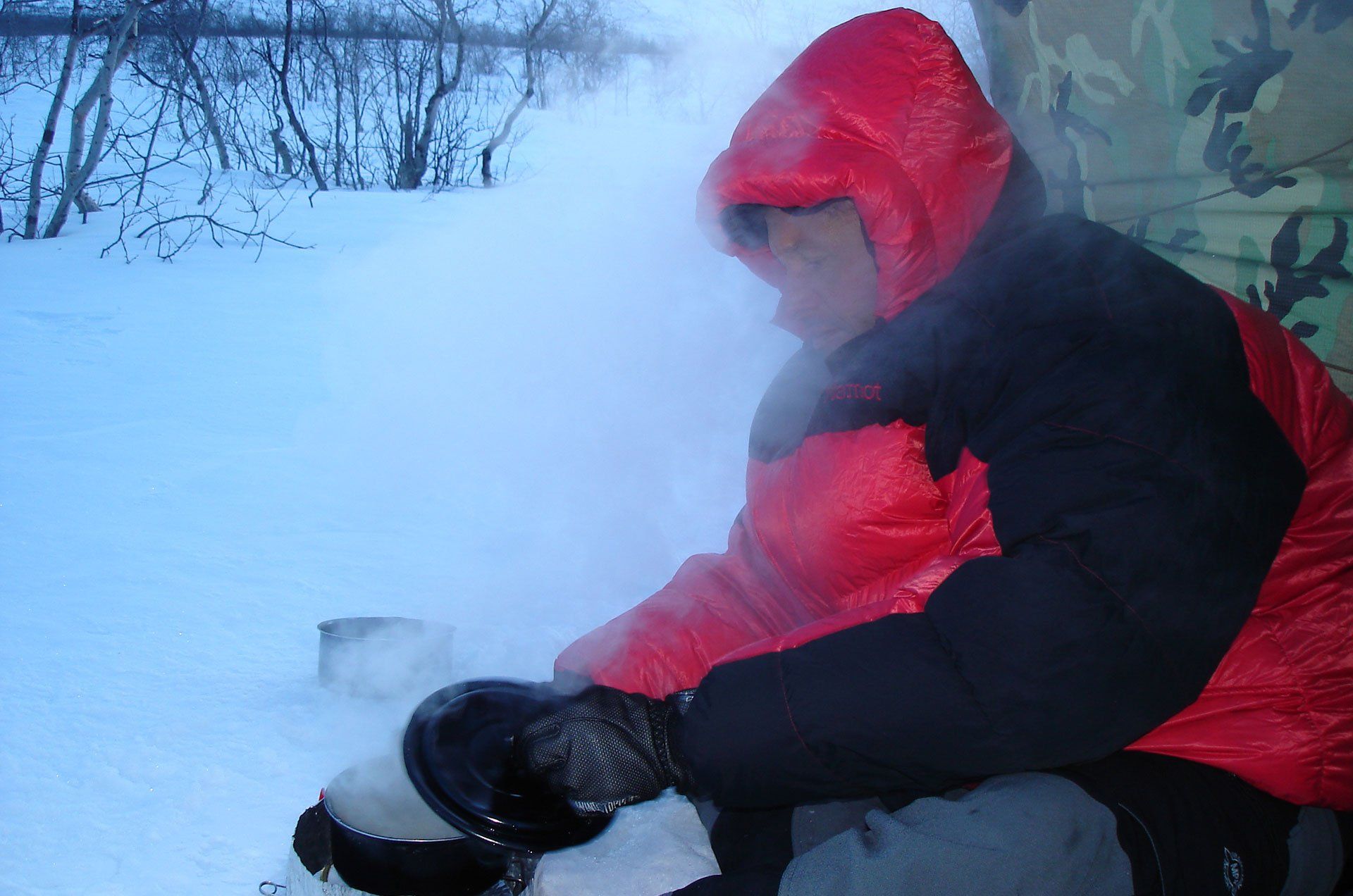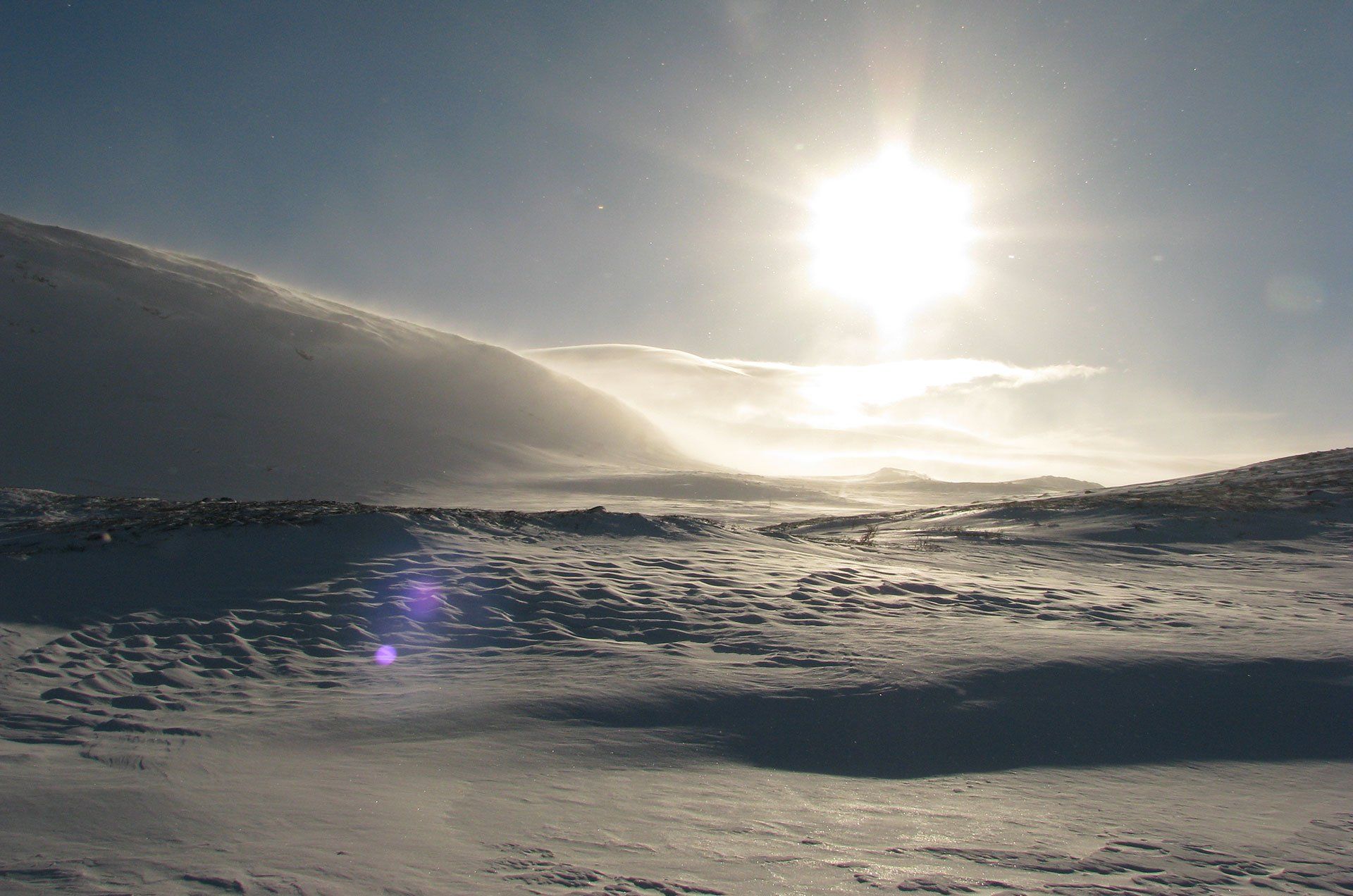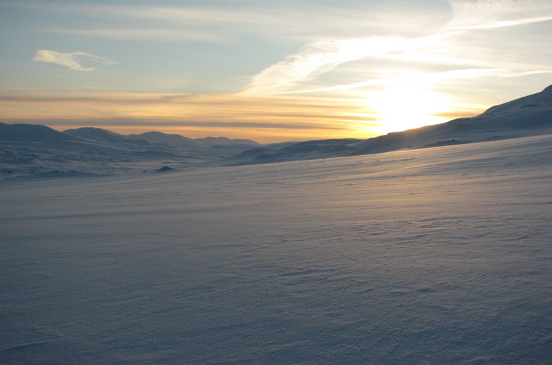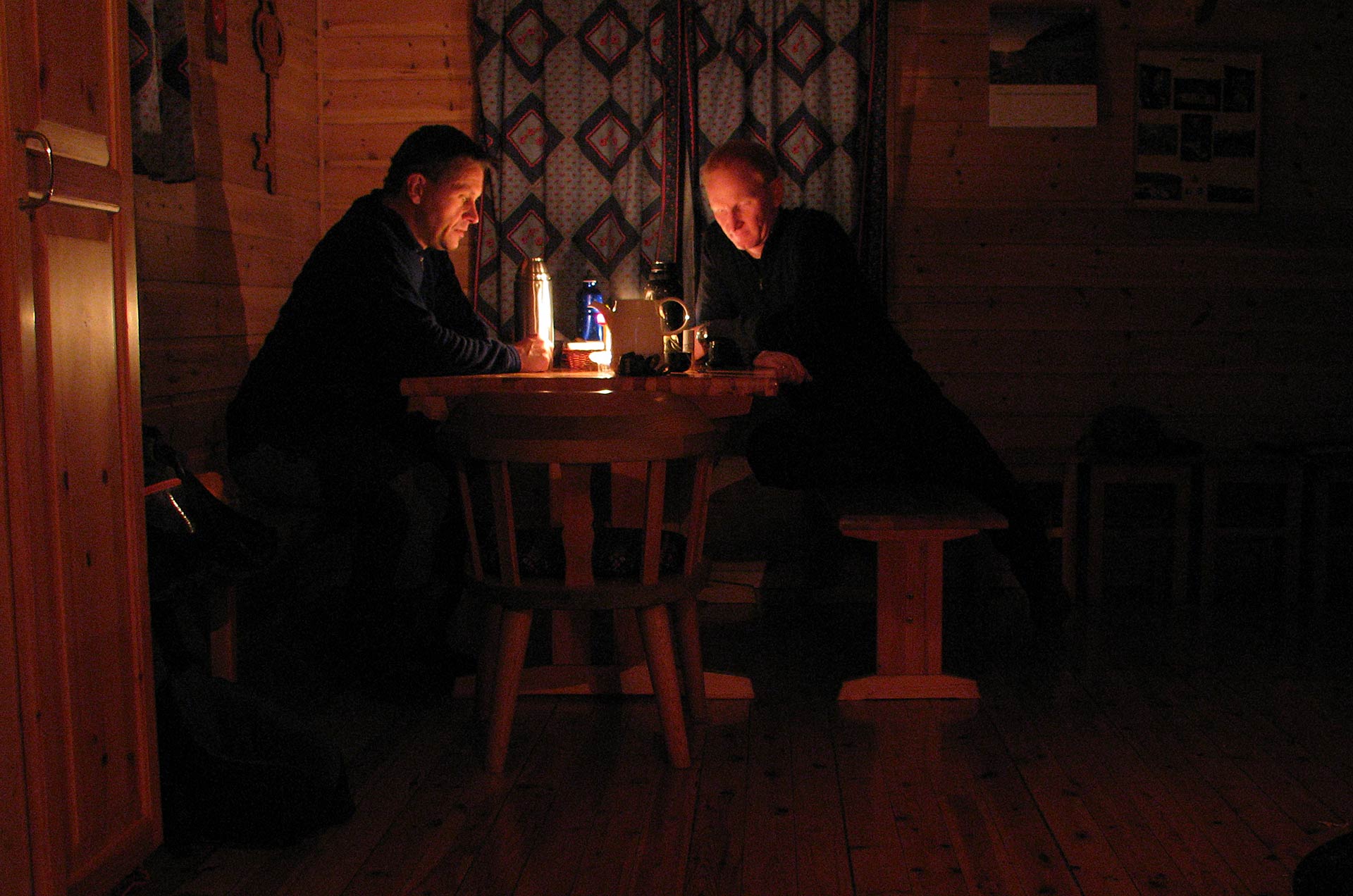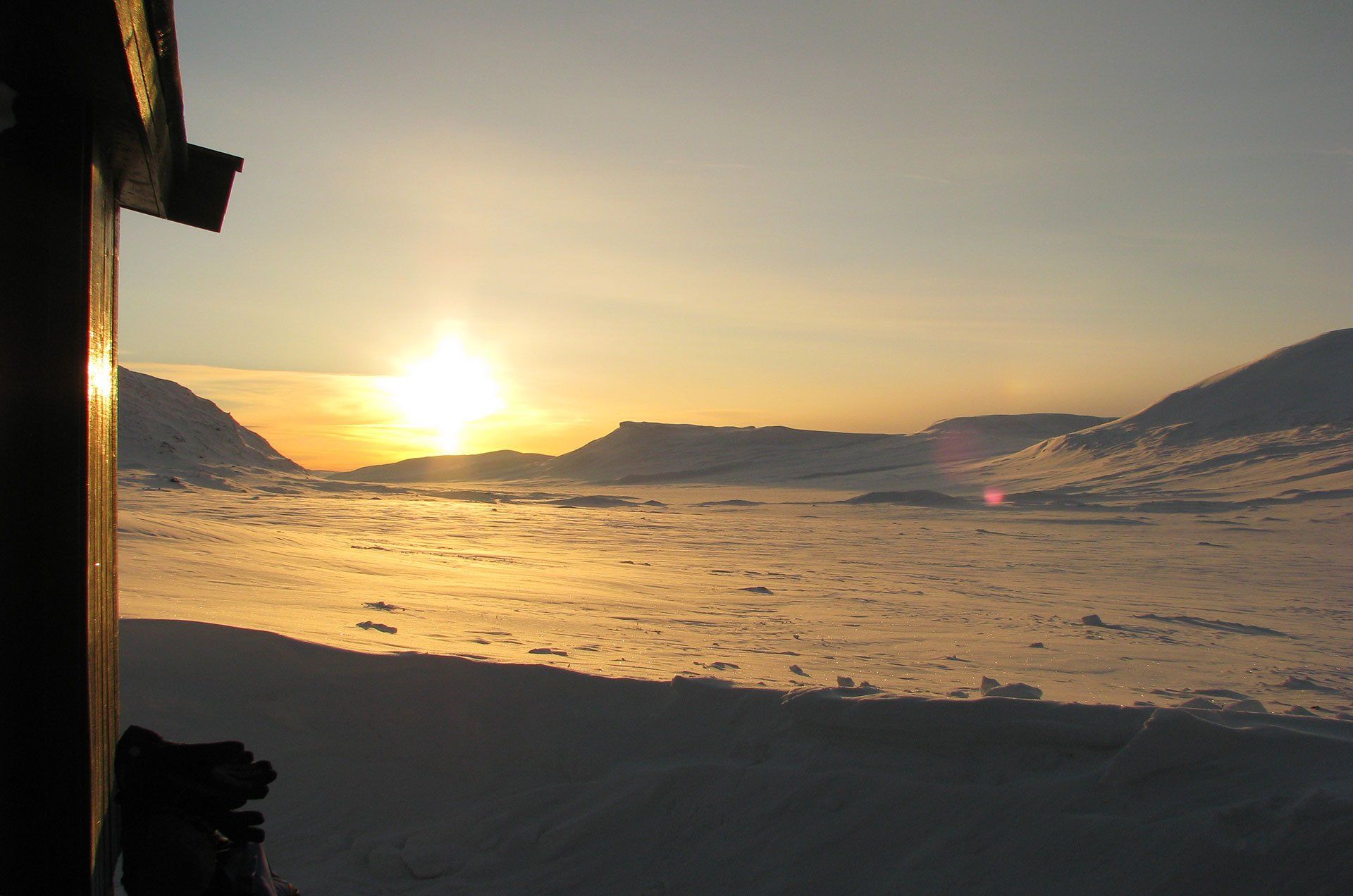 Für die gut 170 km Gesamtstrecke waren wir eine ganze Woche unterwegs und übernachteten in den bereits erwähnten DNT Selbstversorgerhütten, für die man als Mitglied einen Schlüssel kaufen kann. Die Orientierung erfolgte ausschließlich über Karte und Kompass, da die allermeisten Markierungen unter Eis und Schnee verborgen bleiben. Das Mitführen eines GPS-Gerätes ist sehr zu empfehlen, da einsetzender Wind, Nebel und Schneefall die Umgebung ganz schnell in eine weiße Waschküche verwandeln können. Die Hütten sind urgemütlich und werden vom norwegischen Militär zuverlässig mit Brennholz versorgt. So durften wir auf unserer winterlichen Runde magische „30-30-30 Hüttenabende“ erleben: Drinnen +30 Grad und draußen -30 Grad in Kombination mit mehrfach 30 min Polarlichtern über dem Hüttendach. Wer diese Leuchterscheinung durch angeregte Stickstoff- und Sauerstoffatome schon einmal gesehen hat, versteht, warum die Völker Lapplands, Sibiriens und Alaskas die Nordic Lights als Zeichen der Götter betrachteten, die auf diese Weise mit ihnen in Verbindung treten wollten.