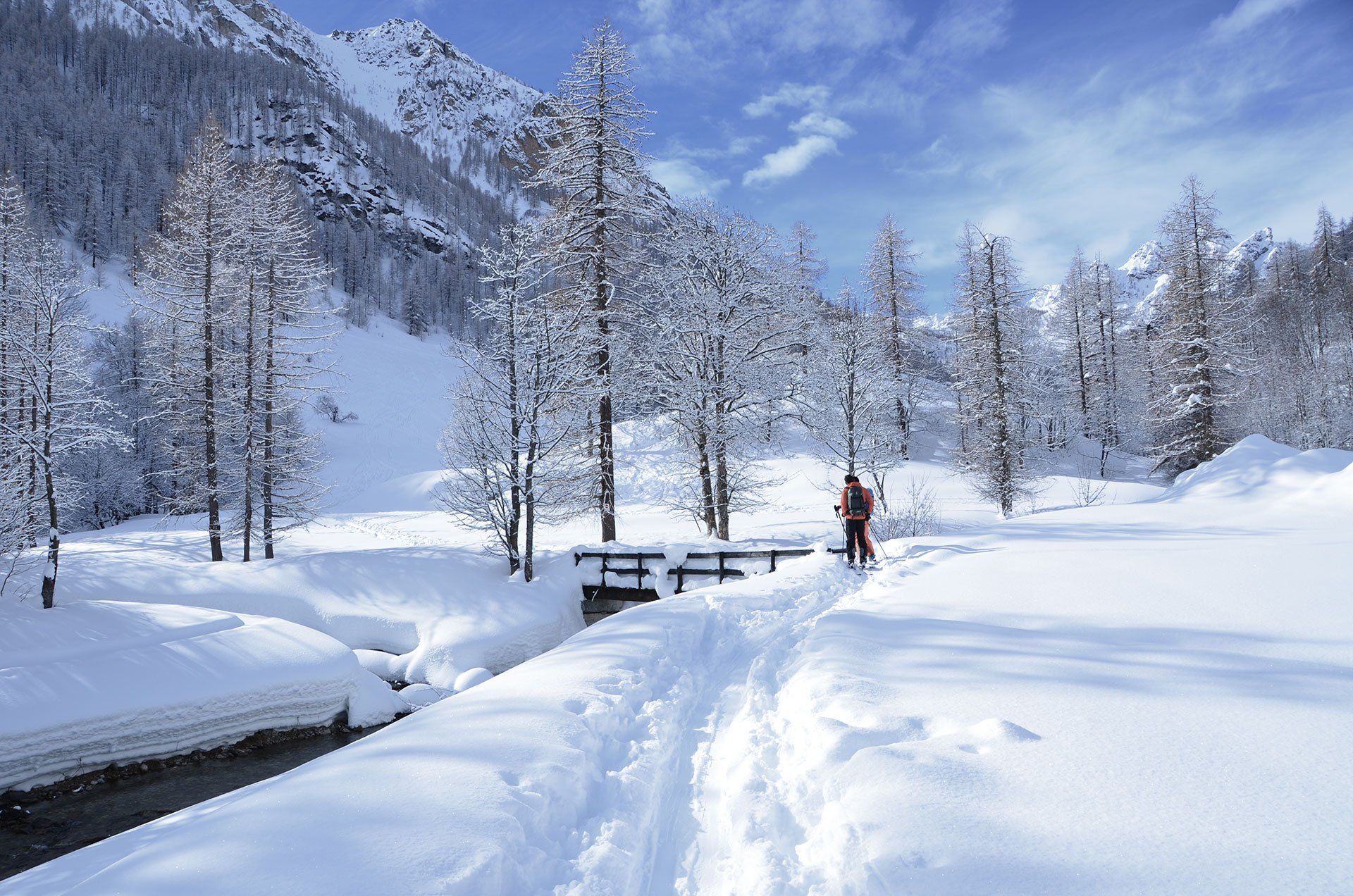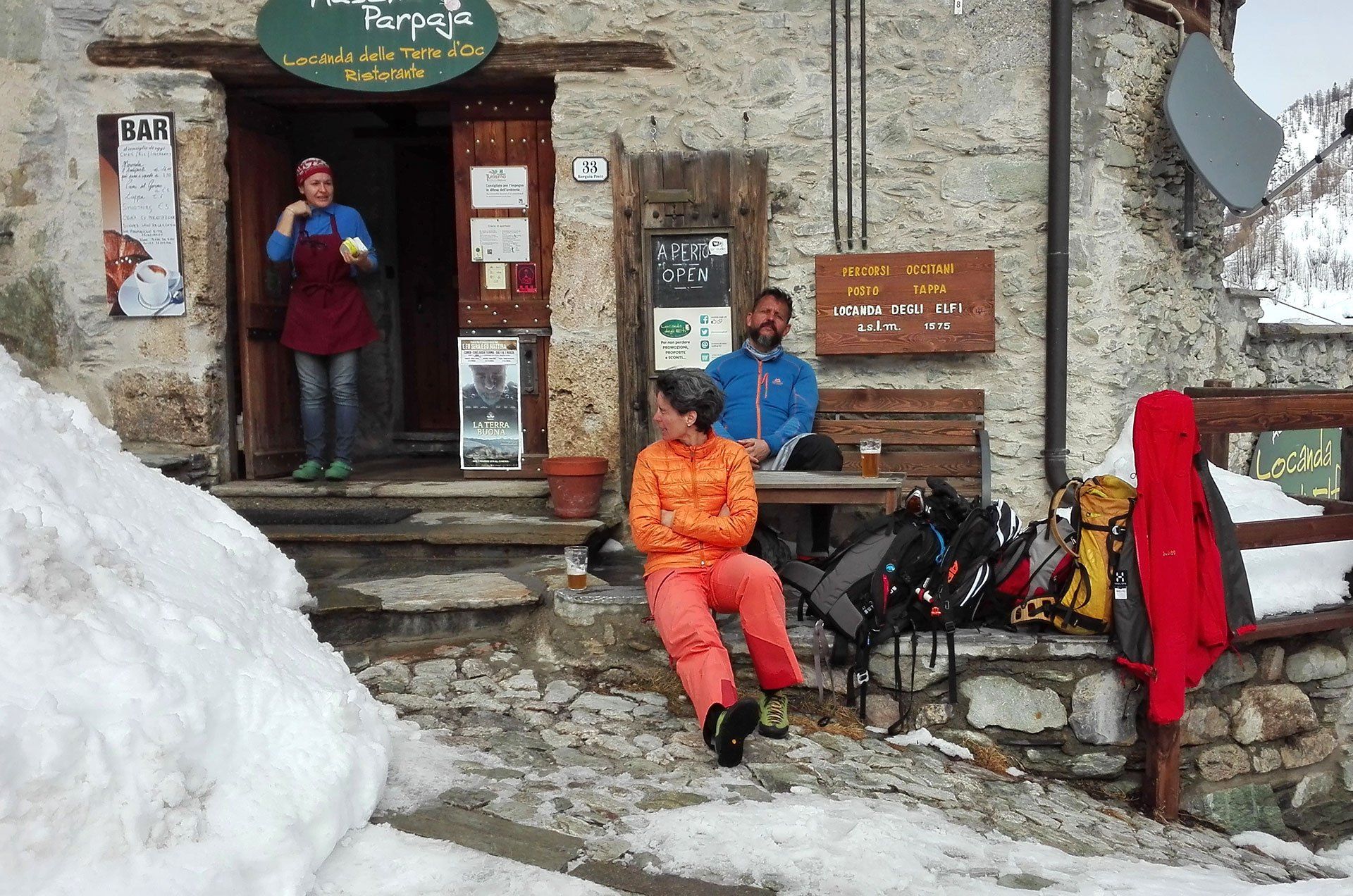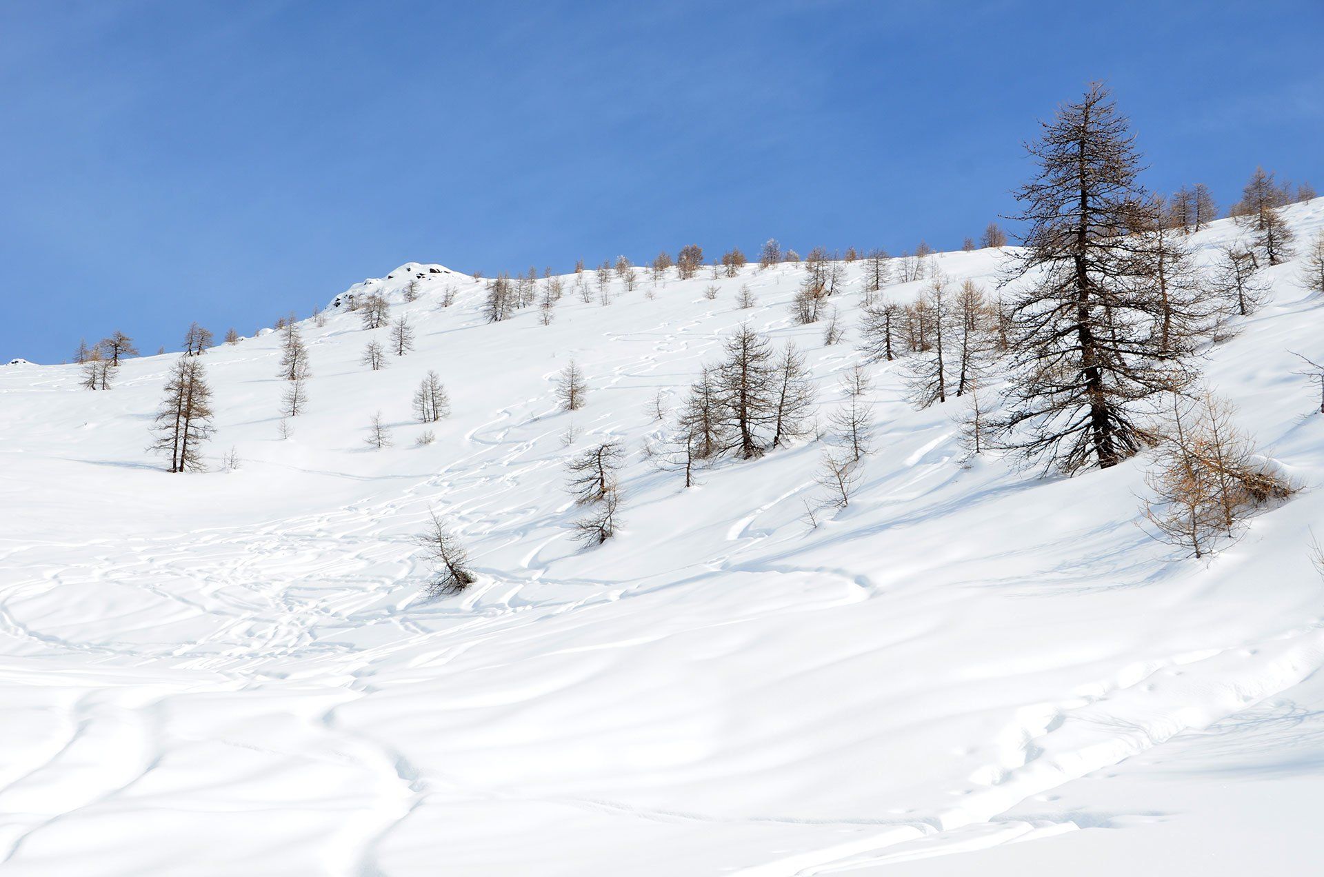 Das Valle Maira in der Provinz Cunego im Piemont ist ein 60 km langes Sacktal ohne einen einzigen Skilift. Spätestens jetzt wird der Tourengeher hellhörig. Sollte er auch. Ums abzukürzen: Allein im Valle Maira lassen sich mehrere Tourenleben verbringen. Die insgesamt 14 Ortschaften und ursprünglich über 200 Weiler waren ab dem frühen 19. Jahrhundert extrem stark von der Landflucht betroffen. Noch heute findet man in den unzähligen kleinen Seitentälern leerstehende, teilweise zerfallene Häuser. Doch mehr und mehr kehren die Jungen in die Höfe ihrer Vorfahren zurück und schaffen einen sanften geschmackvollen Tourismus – ganz weit weg von DJ Ötzi, Glas-Iglus und Corona durchseuchten Apres-Ski-Bars. Aber die Agritourismi in wieder hergerichteten uralten Steinhäusern, beste piemonteser Weine und eine vorzügliche lokale Küche stellen einen adäquaten Ersatz dar. Skitouren-technisch hatten wir in diesem Jahr ein wenig Pech: Es lag nämlich zu viel Schnee, so dass wir die großen Tourengipfel nicht unter die Felle nehmen konnten. Aber eine Baumgrenze, die ein ganzes Stück über die 2000 m hinausgeht, lässt irgendeine schöne Tourenaktion garantiert immer zu.