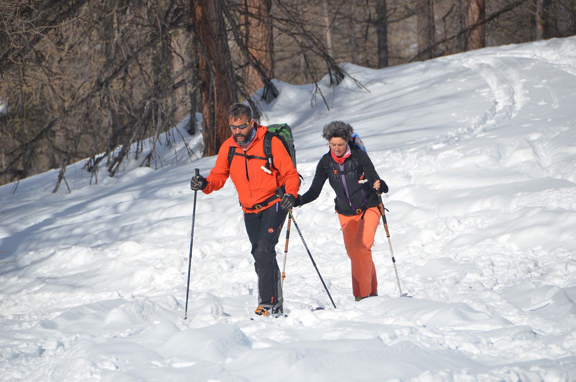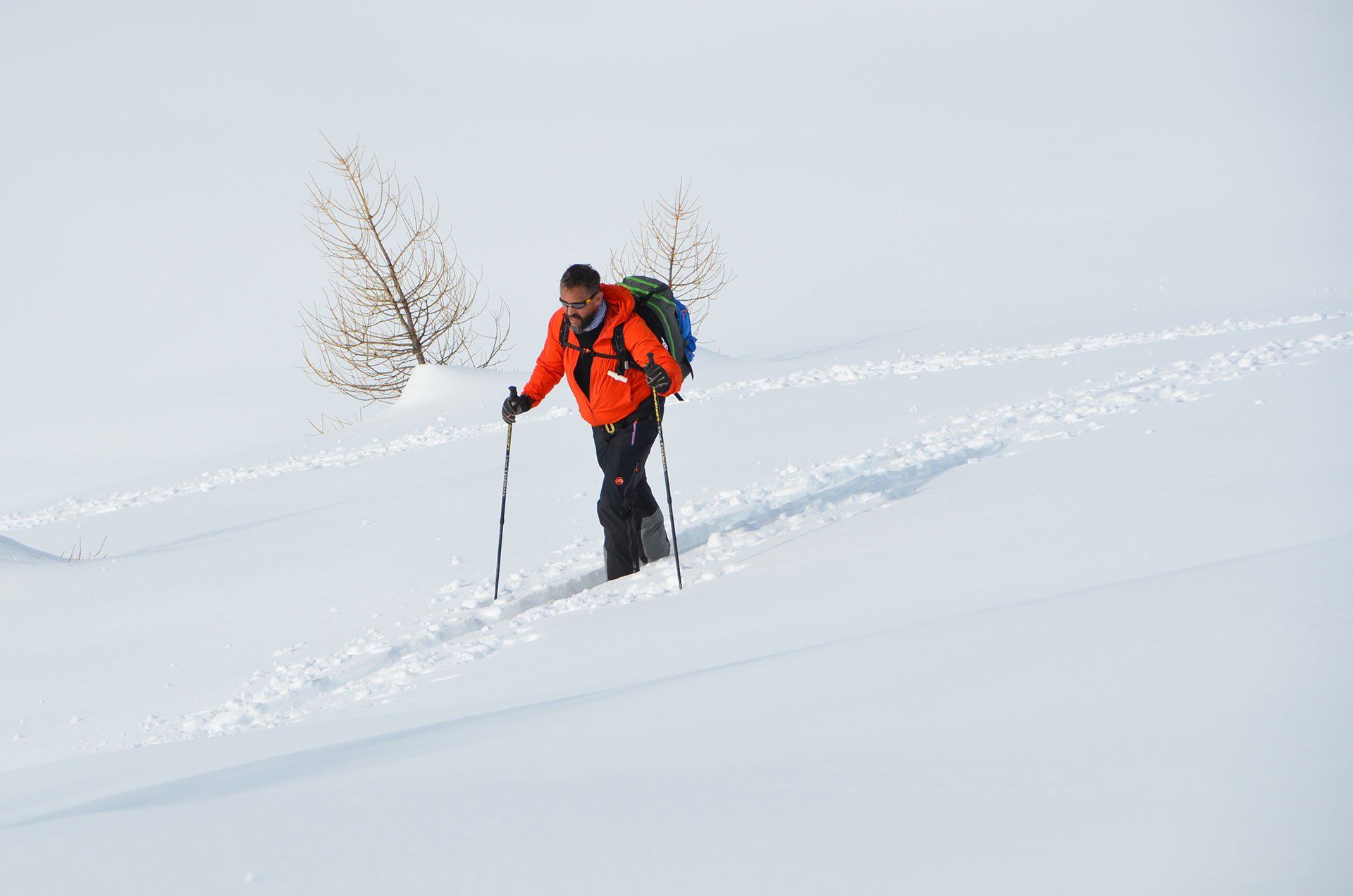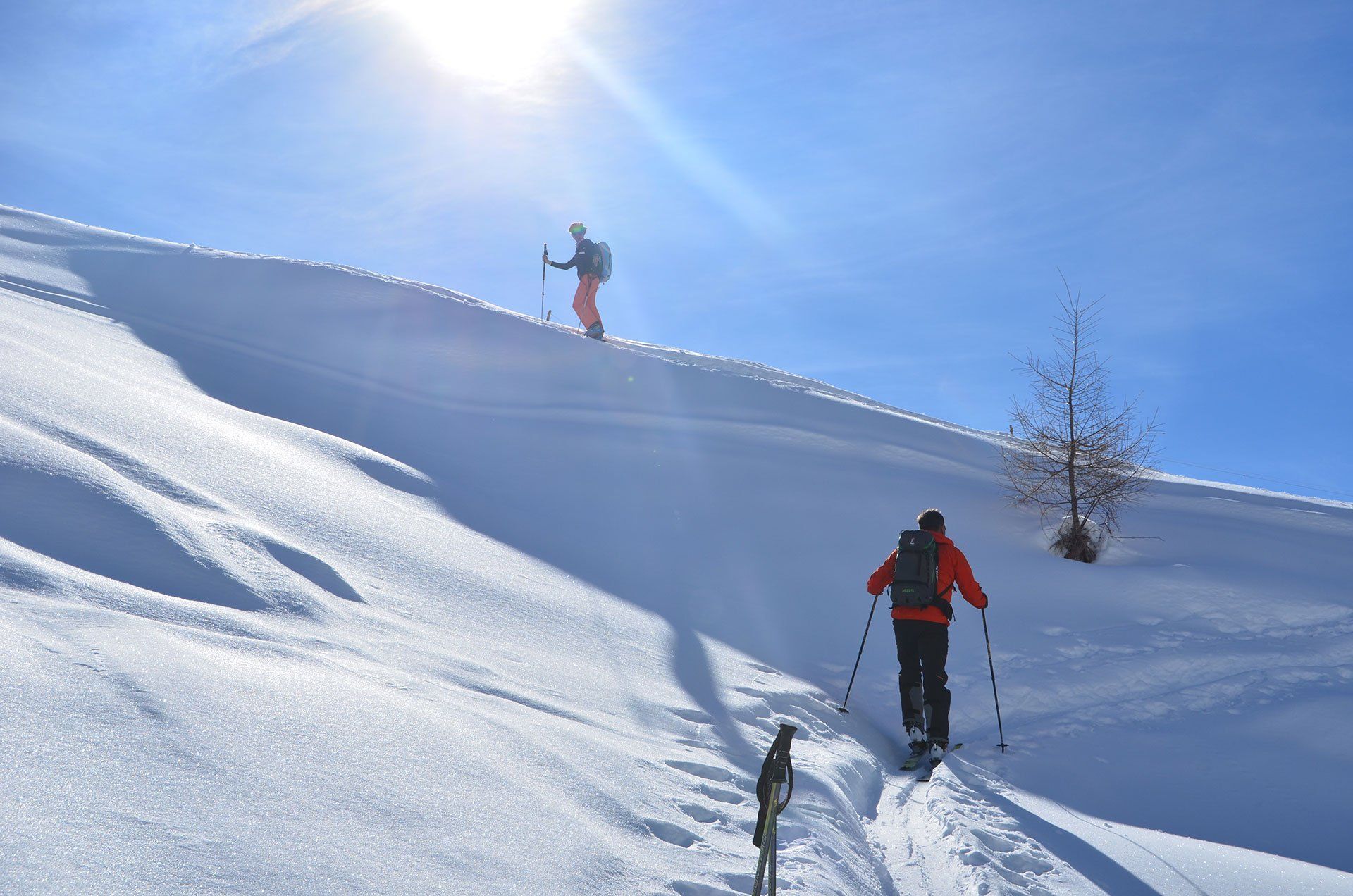 Das Valle Maira in der Provinz Cunego im Piemont ist ein 60 km langes Sacktal ohne einen einzigen Skilift. Spätestens jetzt wird der Tourengeher hellhörig. Sollte er auch. Ums abzukürzen: Allein im Valle Maira lassen sich mehrere Tourenleben verbringen. Die insgesamt 14 Ortschaften und ursprünglich über 200 Weiler waren ab dem frühen 19. Jahrhundert extrem stark von der Landflucht betroffen. Noch heute findet man in den unzähligen kleinen Seitentälern leerstehende, teilweise zerfallene Häuser. Doch mehr und mehr kehren die Jungen in die Höfe ihrer Vorfahren zurück und schaffen einen sanften geschmackvollen Tourismus – ganz weit weg von DJ Ötzi, Glas-Iglus und Corona durchseuchten Apres-Ski-Bars. Aber die Agritourismi in wieder hergerichteten uralten Steinhäusern, beste piemonteser Weine und eine vorzügliche lokale Küche stellen einen adäquaten Ersatz dar. Skitouren-technisch hatten wir in diesem Jahr ein wenig Pech: Es lag nämlich zu viel Schnee, so dass wir die großen Tourengipfel nicht unter die Felle nehmen konnten. Aber eine Baumgrenze, die ein ganzes Stück über die 2000 m hinausgeht, lässt irgendeine schöne Tourenaktion garantiert immer zu.