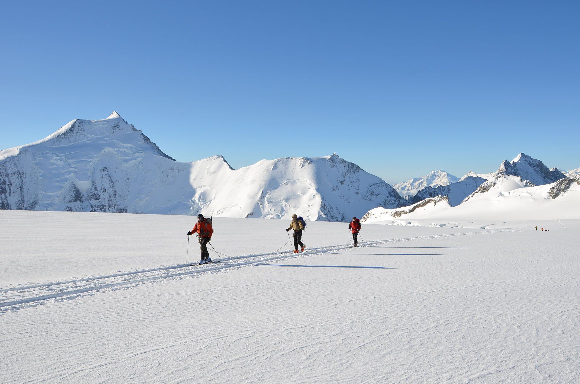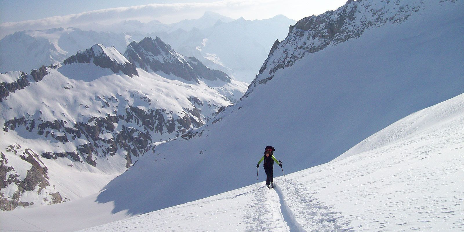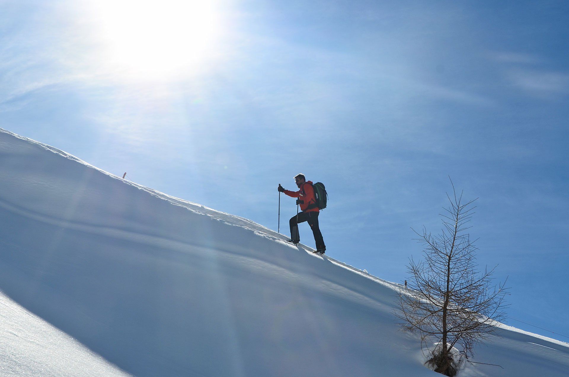 Skitourengehen ist vielleicht die Krönung des Bergsteigens überhaupt – technisch anspruchsvoll und maximaler Genuss. Aufstieg durch weglose Weite und dabei immer die Vorfreude auf die abschließende Abfahrt. Zugegeben, nicht immer ist Pulver oder Firn die Belohnung – doch immer ist man beeindruckt von der imposanten verschneiten Bergwelt. Und was gibt es Schöneres als ein Glas Rotwein auf der Hütte nach endlosen Spitzkehren und einer Abfahrt im Bruchharsch …