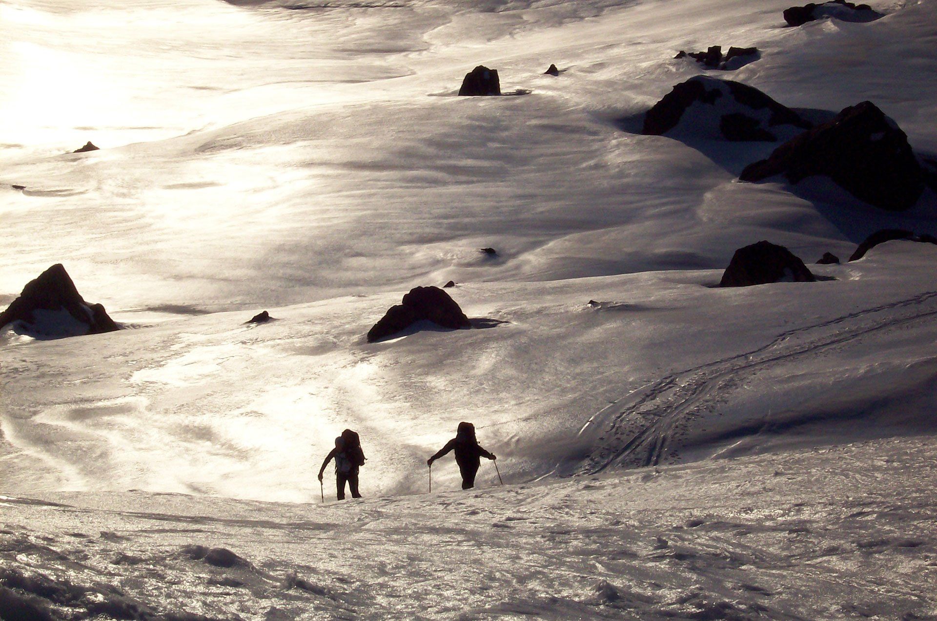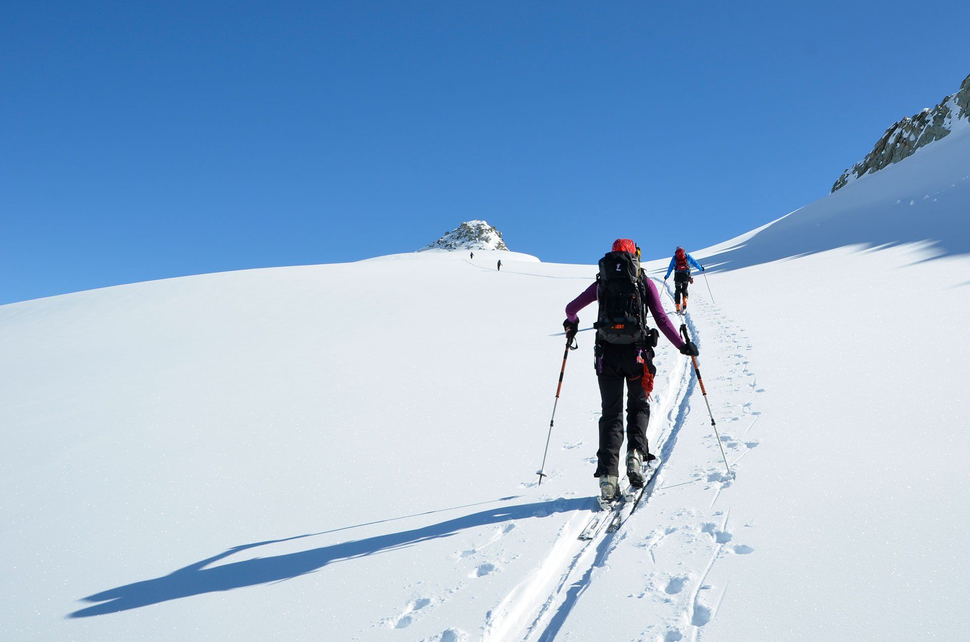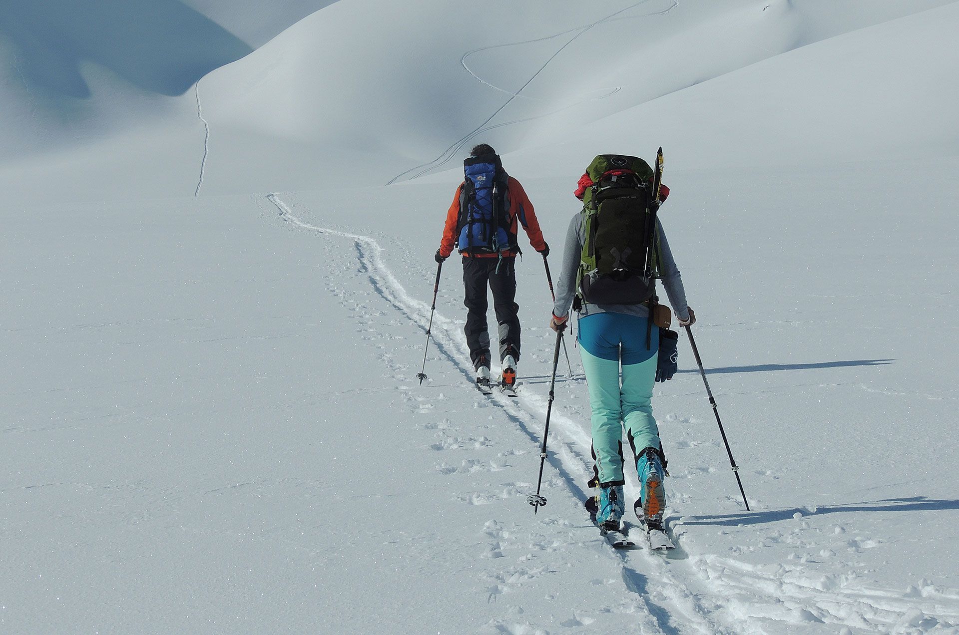 Skitourengehen ist vielleicht die Krönung des Bergsteigens überhaupt – technisch anspruchsvoll und maximaler Genuss. Aufstieg durch weglose Weite und dabei immer die Vorfreude auf die abschließende Abfahrt. Zugegeben, nicht immer ist Pulver oder Firn die Belohnung – doch immer ist man beeindruckt von der imposanten verschneiten Bergwelt. Und was gibt es Schöneres als ein Glas Rotwein auf der Hütte nach endlosen Spitzkehren und einer Abfahrt im Bruchharsch …